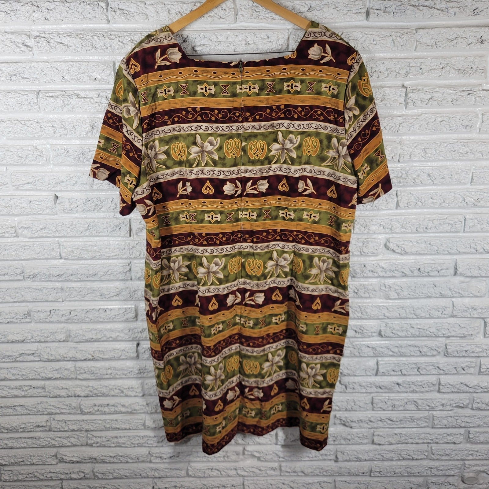 Sag Harbor Women's 26W Plus Size Dress Brown Geometric Square Neck GEO179E