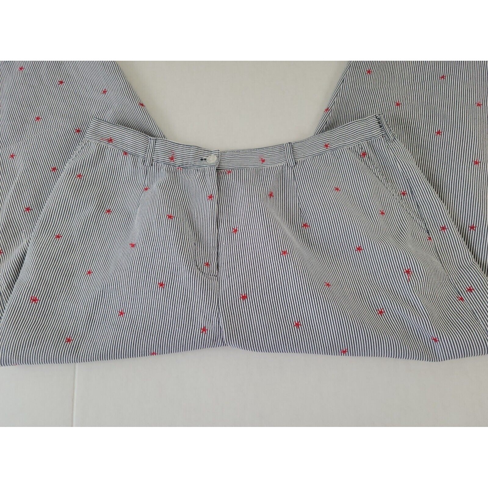 Sag Harbor Womens Pants 18 Plus Capri Embroider Stars Seersucker Gray Stripe