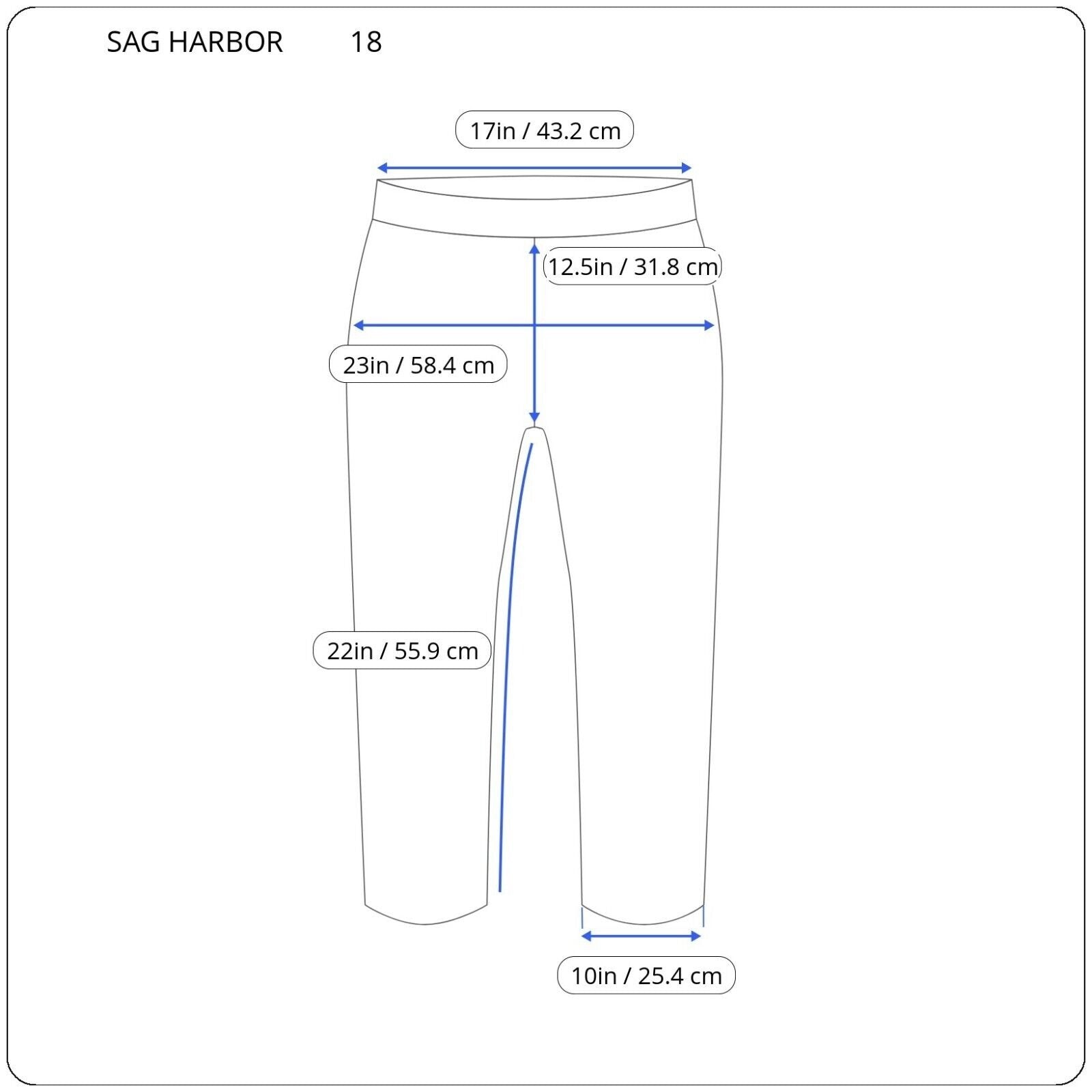 Elevate your casual wardrobe with these stylish Sag Harbor women's pants. The striped pattern and embroidered accents add a touch of sophistication to these comfortable capri pants. The lightweight cotton blend material makes them perfect for all seasons and the high-rise waist provides a flattering fit. Featuring a zip closure and straight leg style, these pants are both easy to wear and machine washable. With a size of 18 and a waist size of 34 inches, they are designed for plus-size women. Whether you're running errands or enjoying a day out, these versatile pants are a must-have for any fashion-conscious woman.