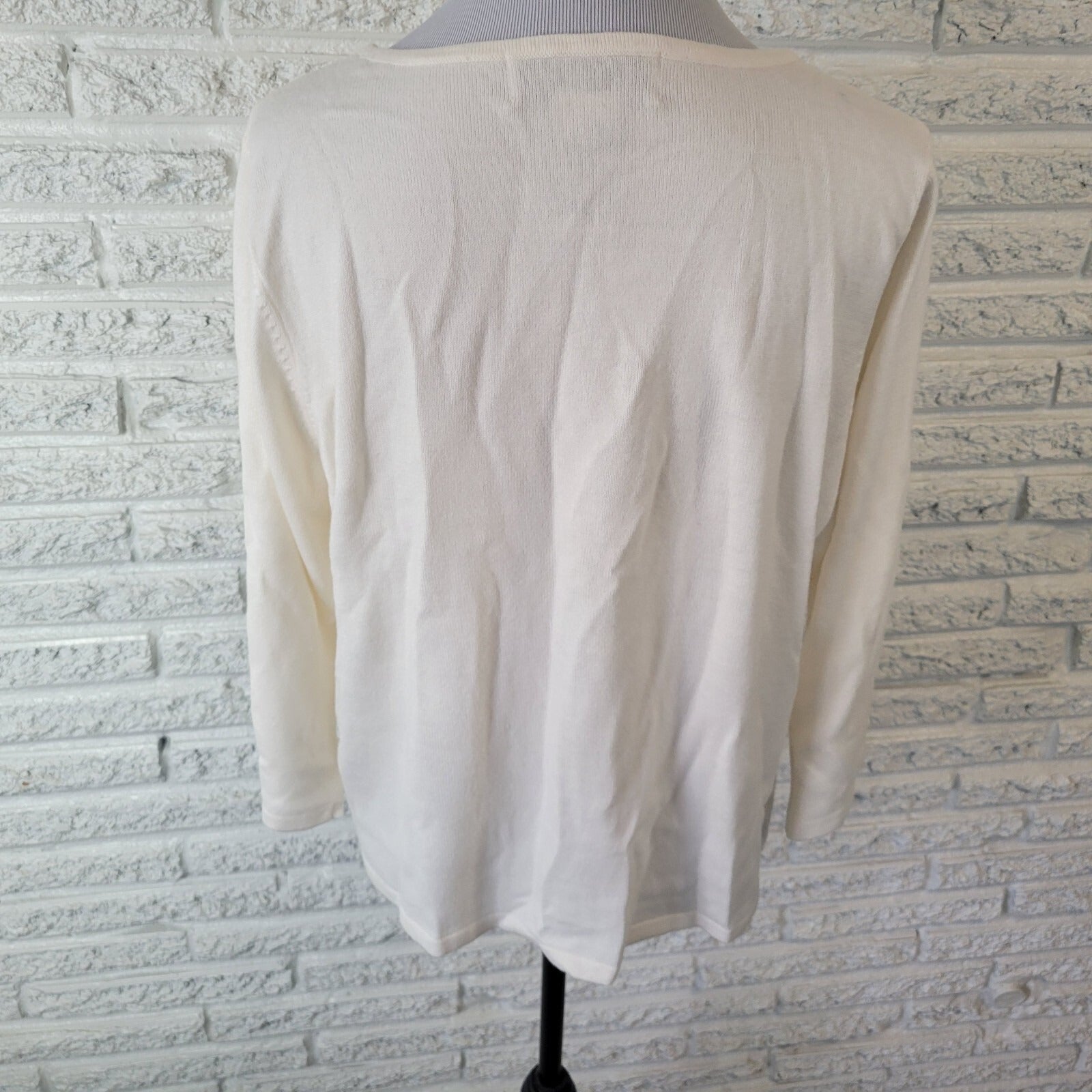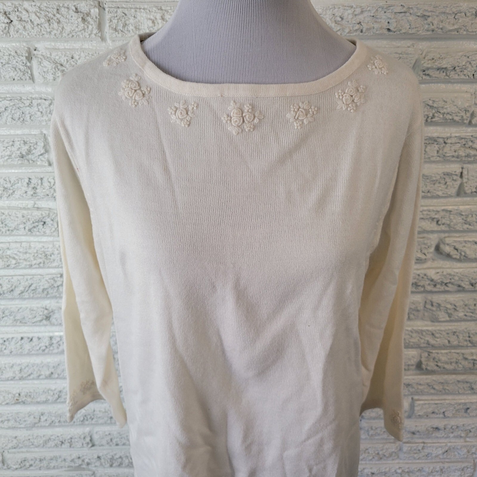 Sag Harbor Womens Top Extra Large 3/4 Sleeve White Acrylic Soft Embroidered