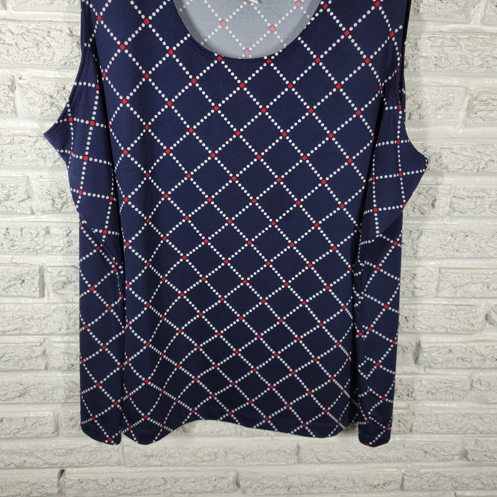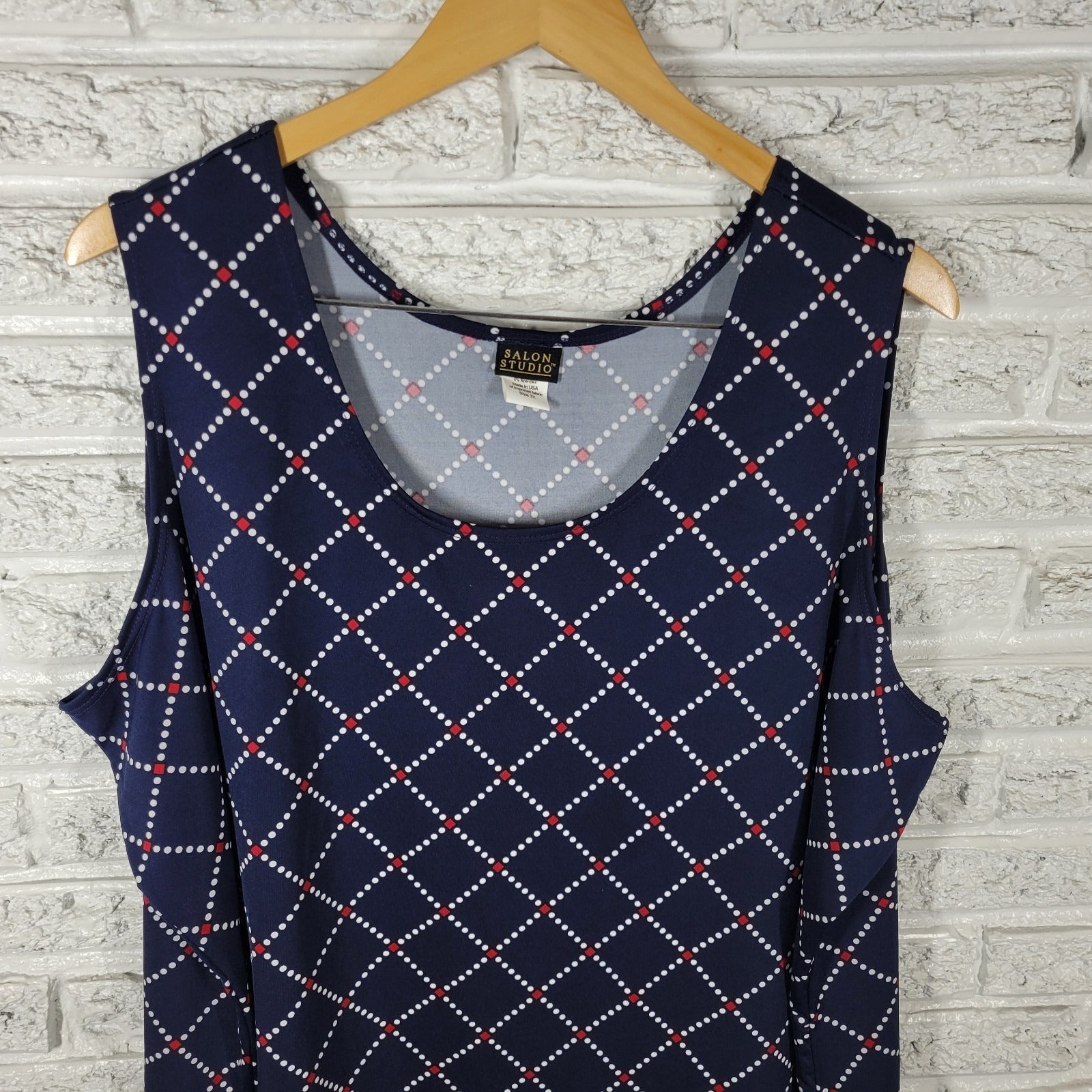 Salon Studio Womens Top 3X Plus Tank Blue Red Geometric Poly Blend Office Casual