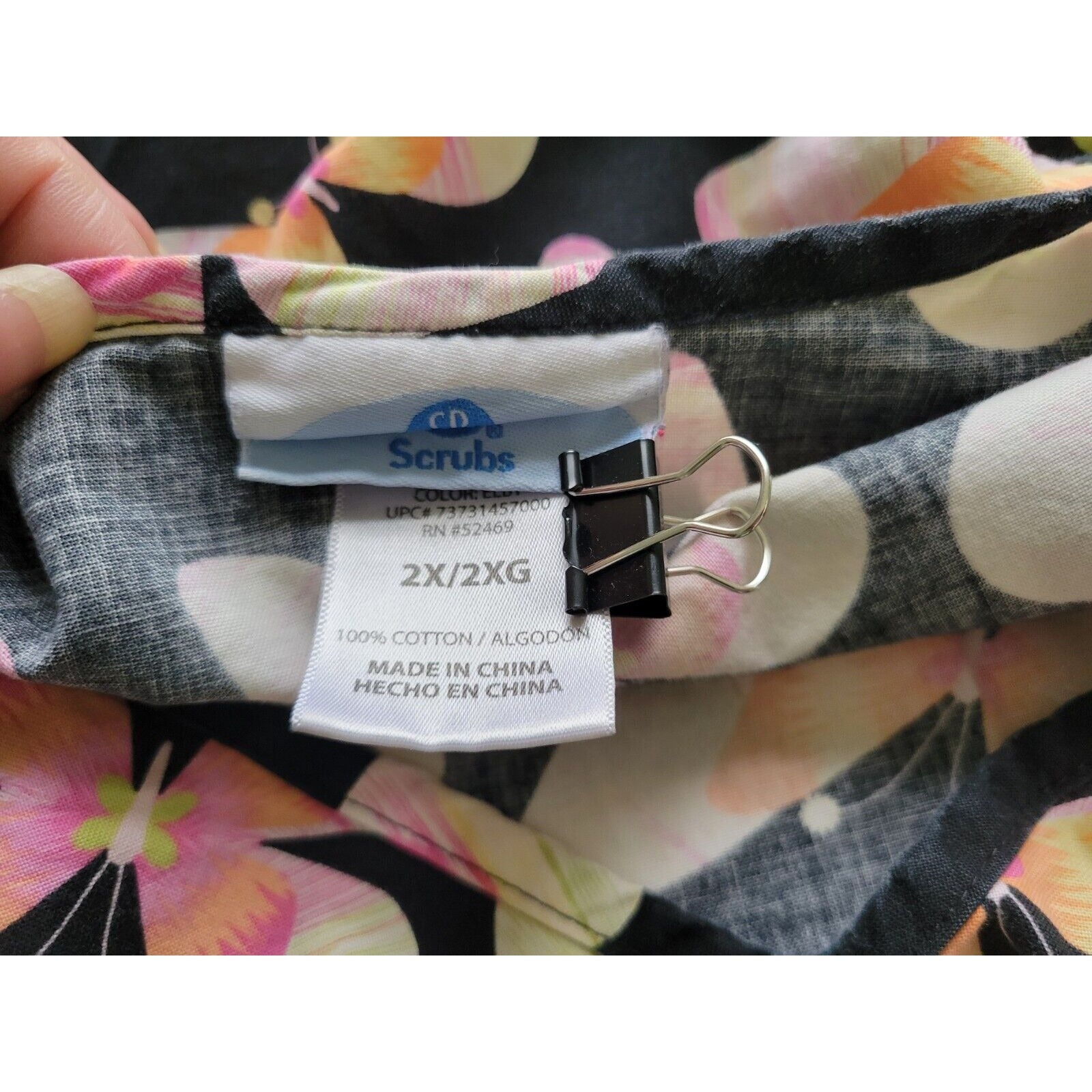 SB Scrubs Unisex Top 2X Short Sleeve Butterflies Pockets Black Floral Cotton