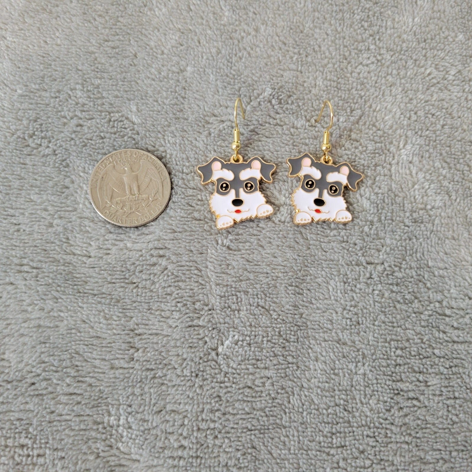 Schnauzer Dog Puppy Earrings One Pair Gold Tone Hanging Dangle Fish Hook Novelty