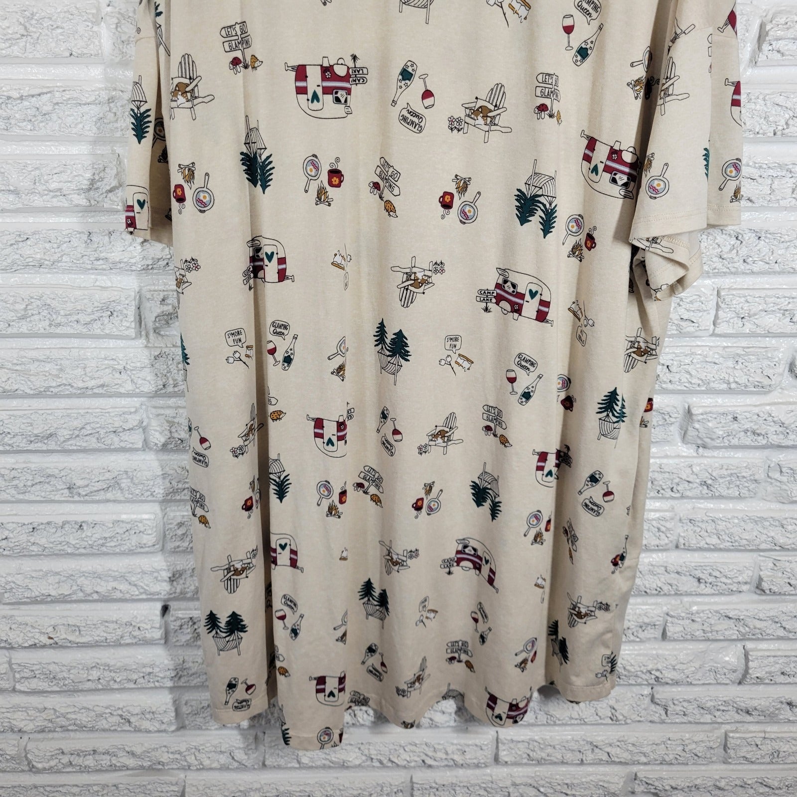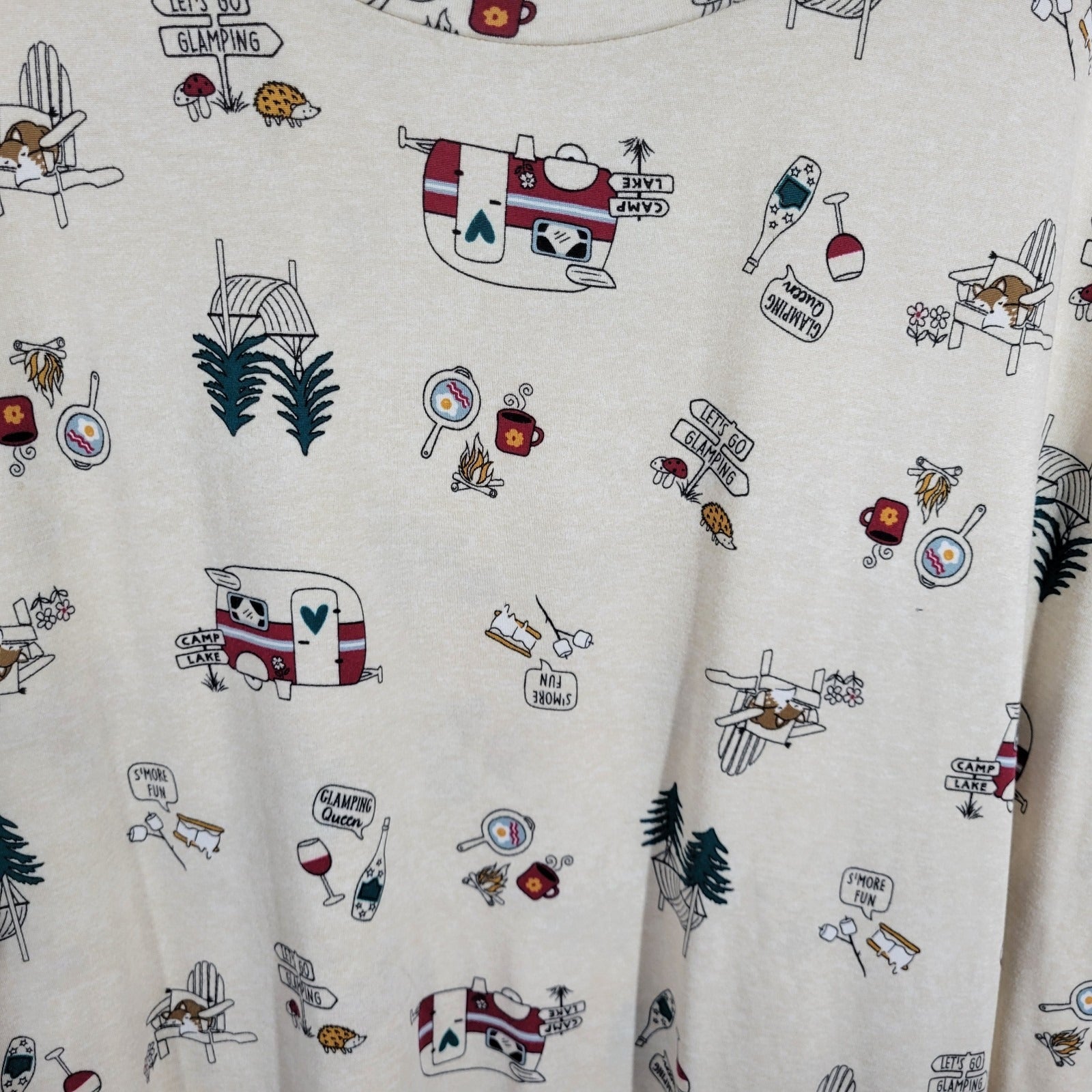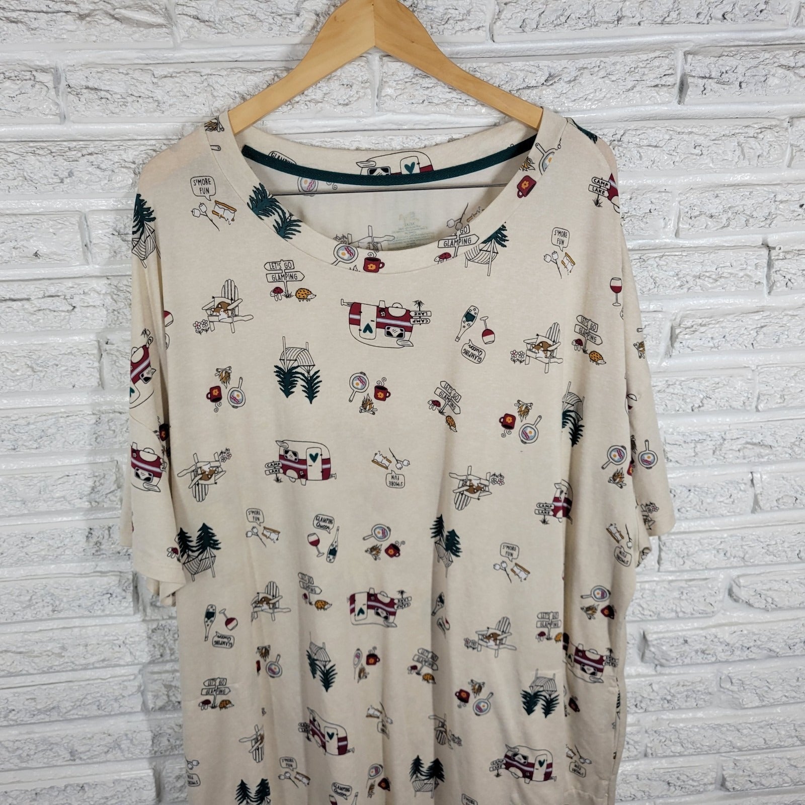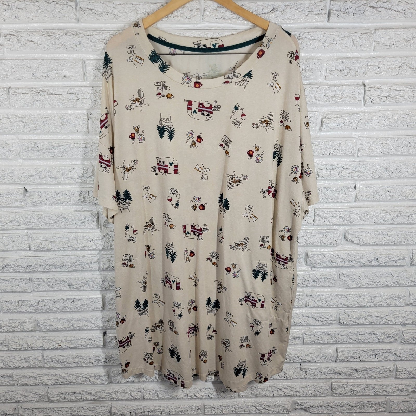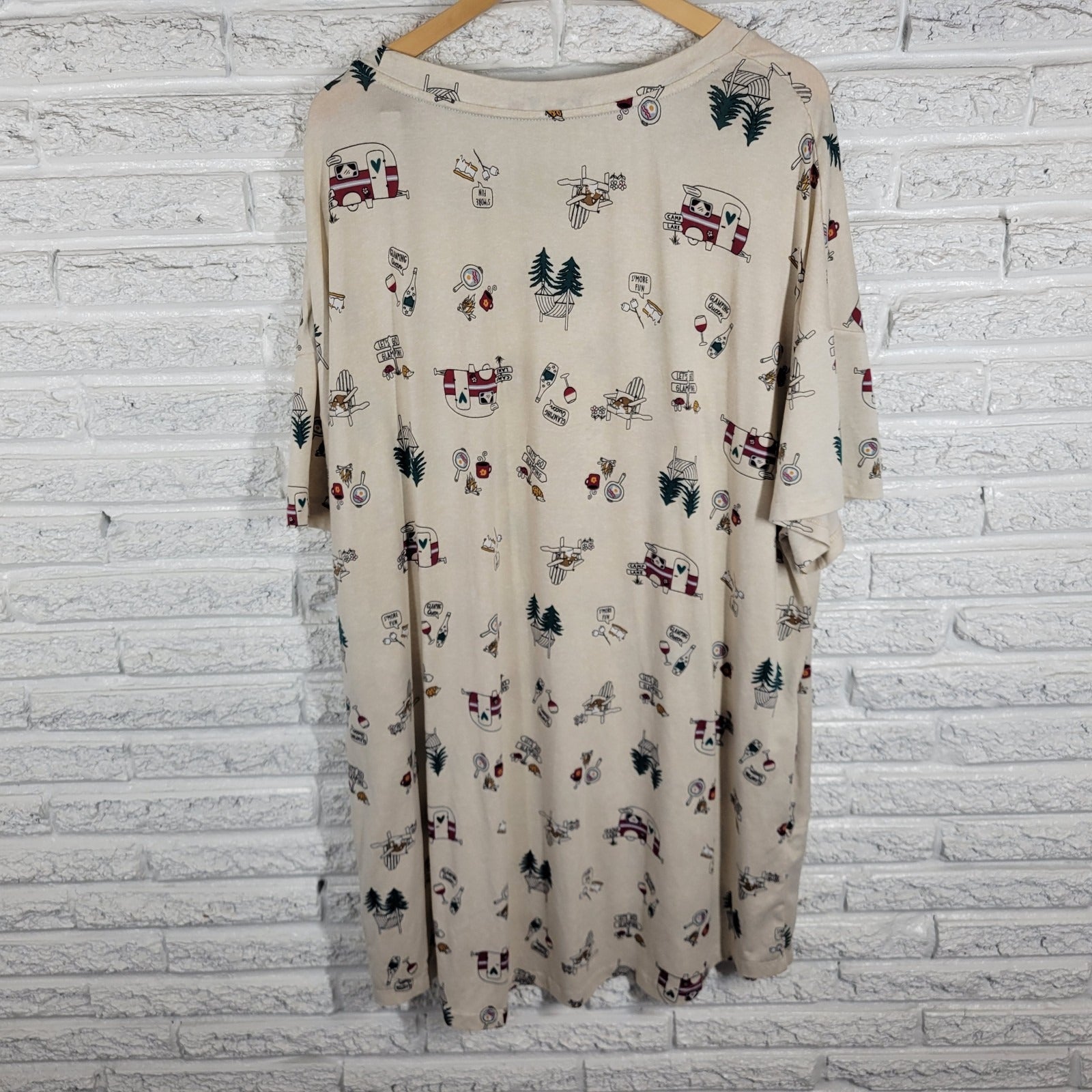 Secret Treasures Womens Pajama Top 2X 3X Plus Gown Lets Go Glamping Red Green