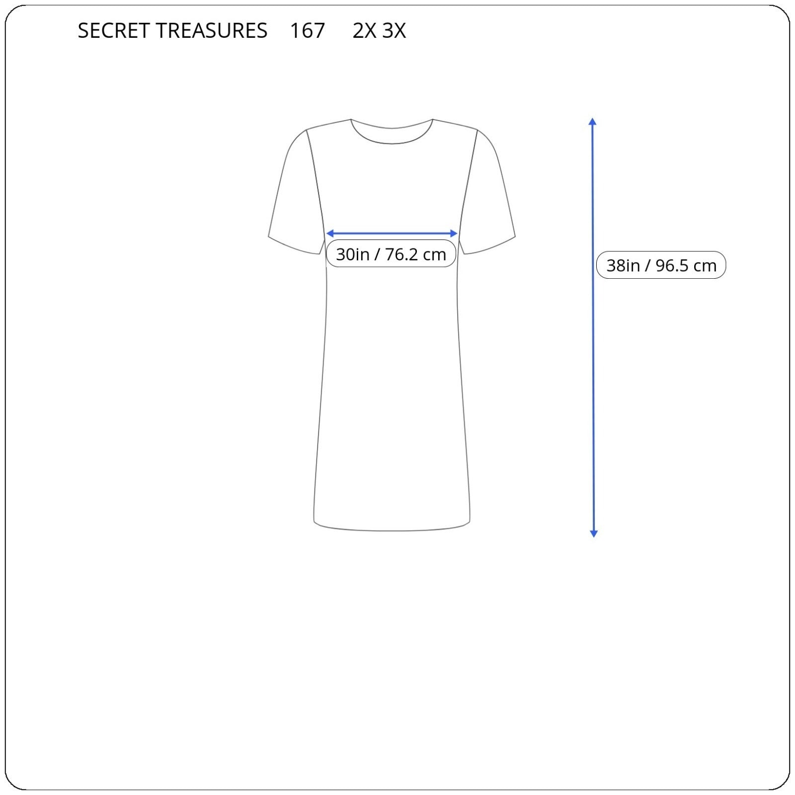 The Secret Treasures Women's Pajama Top in size 2X/3X is a vibrant red/green gown that is perfect for glamping. This plus-size garment features short sleeves and is machine washable for easy care. Made by Secret Treasures, this lightweight gown is suitable for all seasons and is designed with a festive color scheme of red and green. Perfect for lounging or sleeping, this glamorous nightwear piece is sure to add a touch of luxury to any woman's wardrobe.