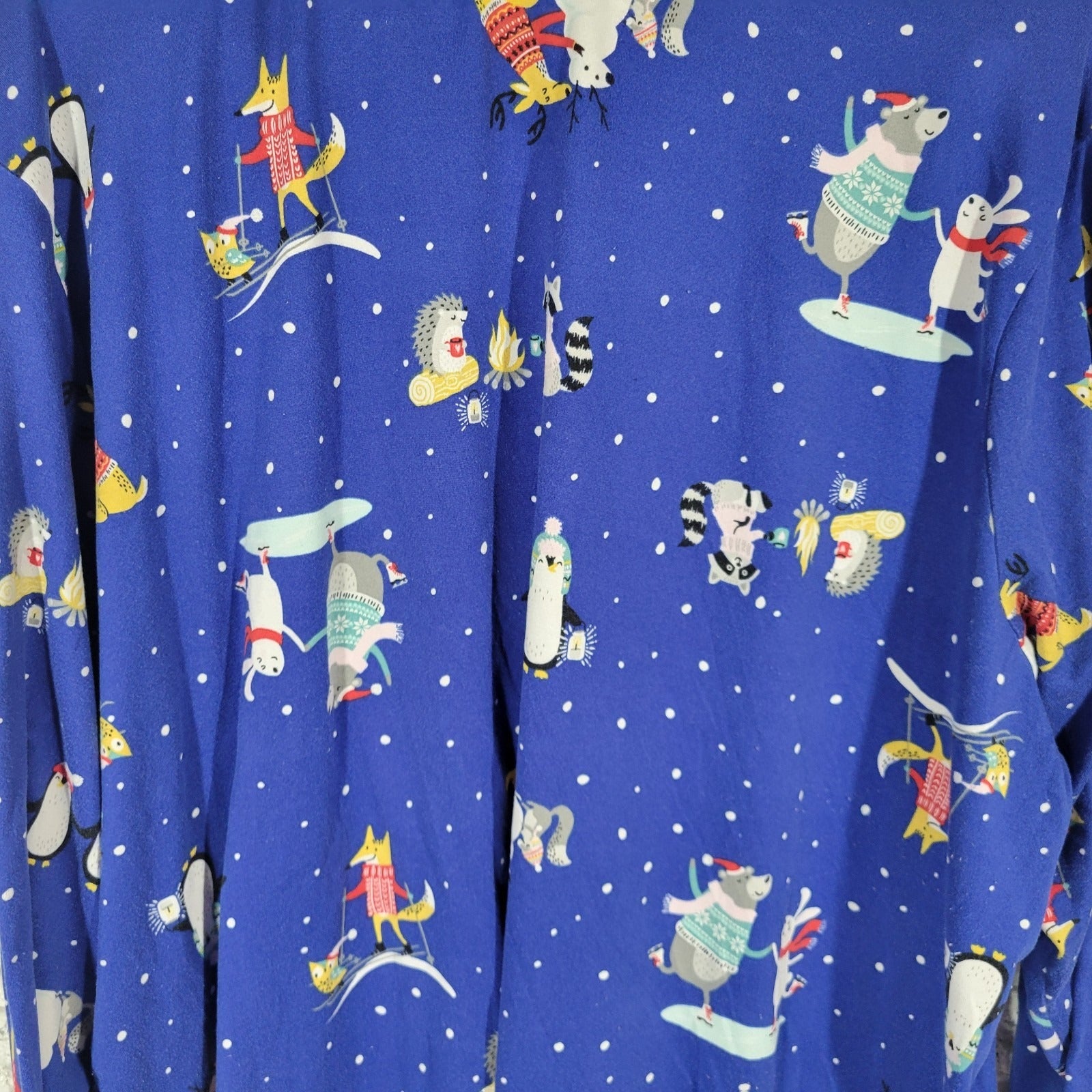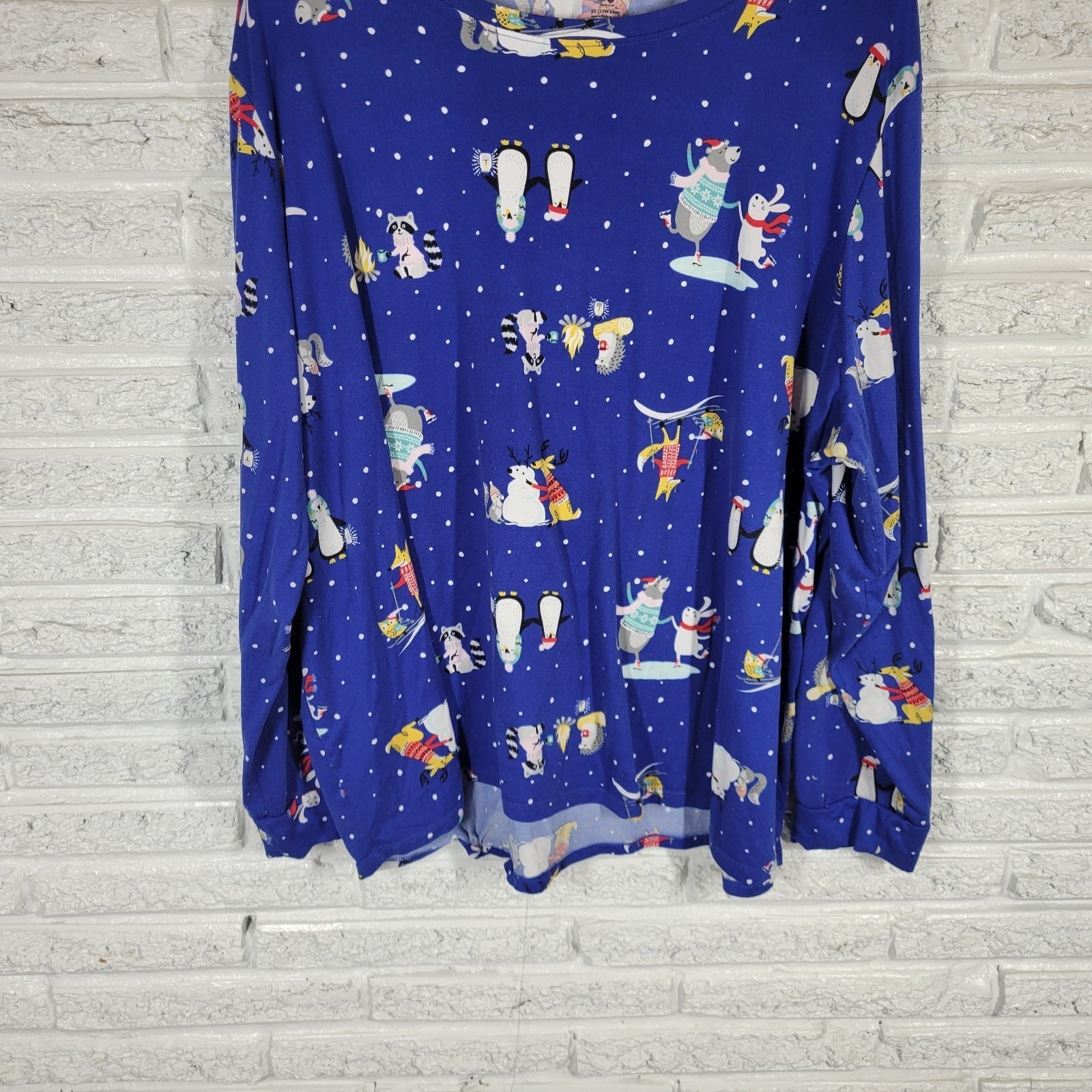 Secret Treasures Womens Pajama Top 3X Plus Poly Blend Blue Animals Winter Comfy
