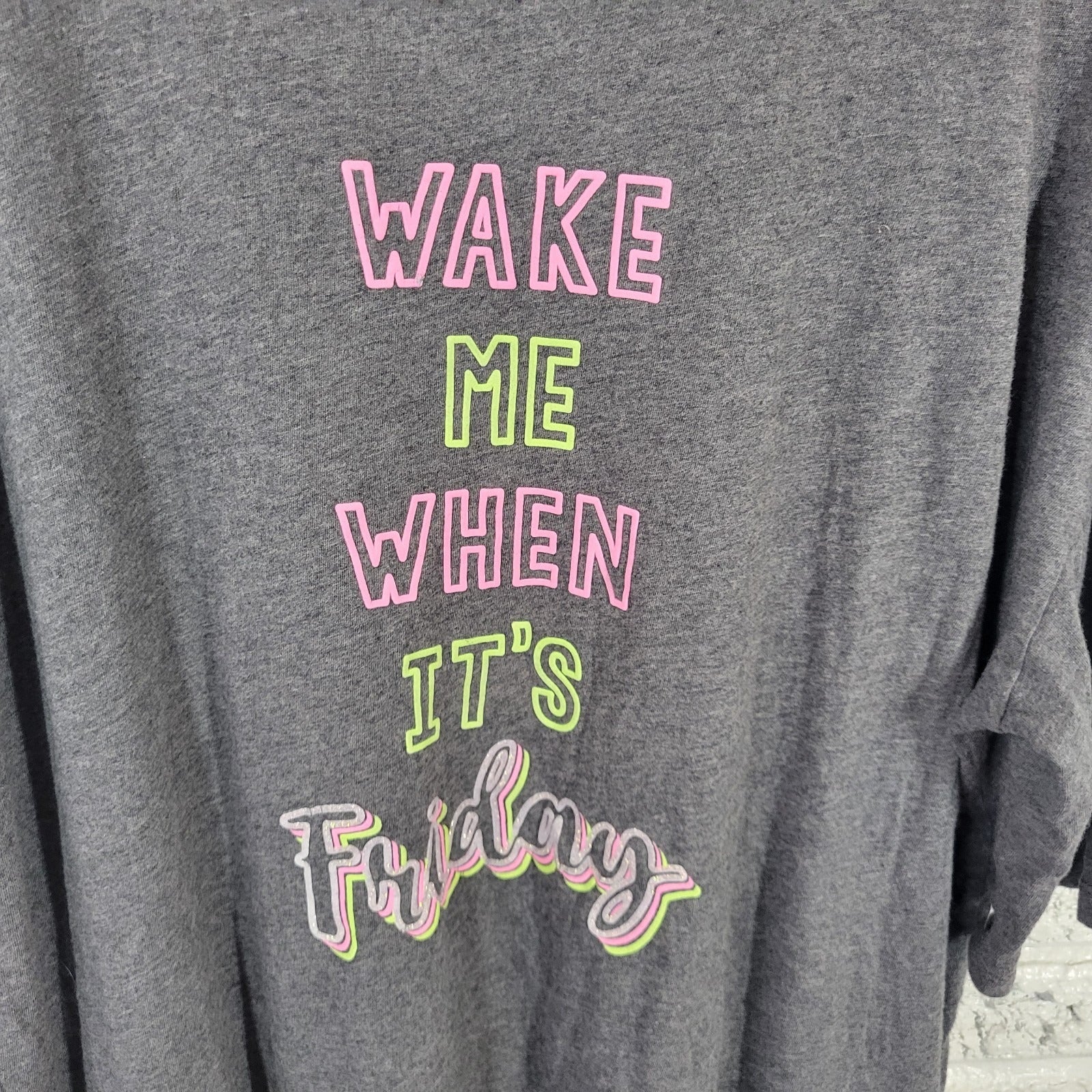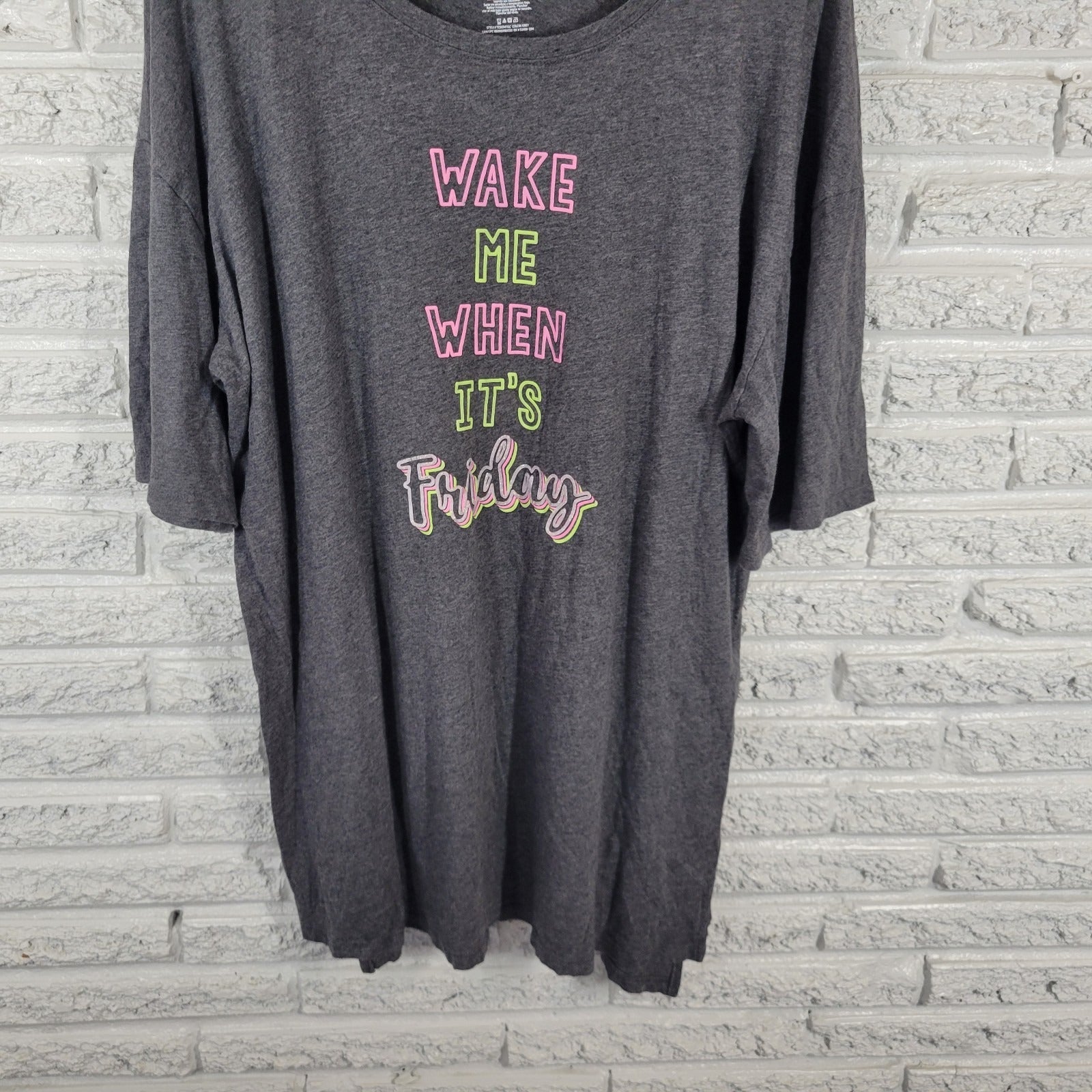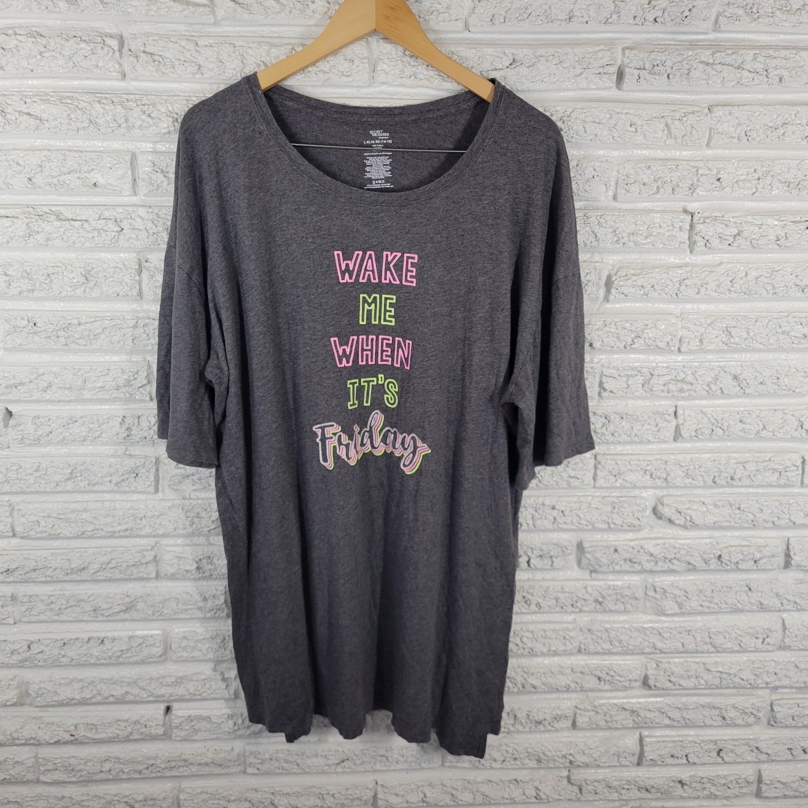 Secret Treasures Womens Pajama Top L XL Gown Wake Me When Its Friday Gray Lounge