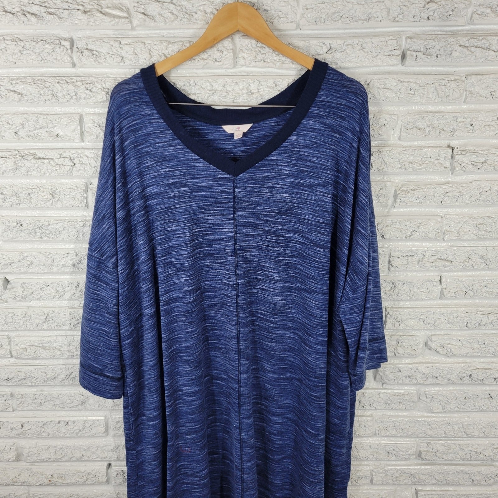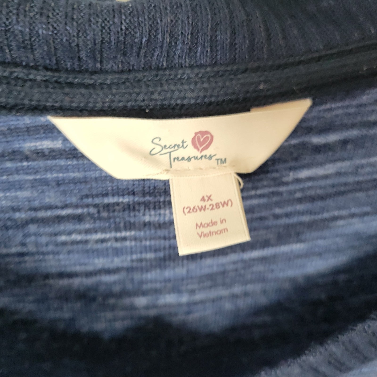 The Secret Treasures Women's Robe in size 4X Plus is a comfortable and stylish loungewear piece perfect for all seasons. This blue heather robe features short sleeves, a V-neckline, and soft pockets for added convenience. Made from a cozy poly blend, this robe is machine washable for easy care. With a relaxed fit and plus size design, this robe offers both style and comfort for women looking for an oversized and cozy outerwear option. Made in Vietnam, this robe from Secret Treasures is a versatile and practical addition to any woman's wardrobe.