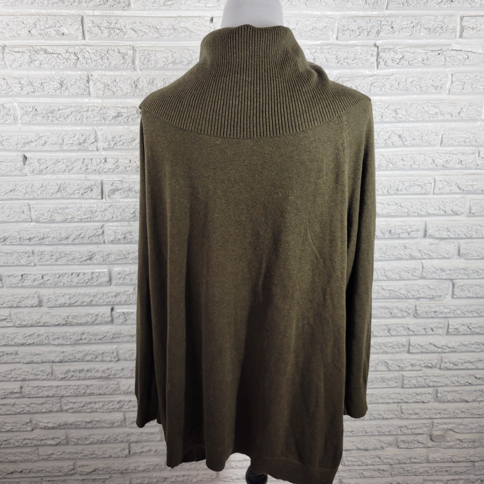 Sejour Womens Sweater 2X Plus Tunic 3/4 Sleeve Green Cowl Neck Soft Cotton Blend