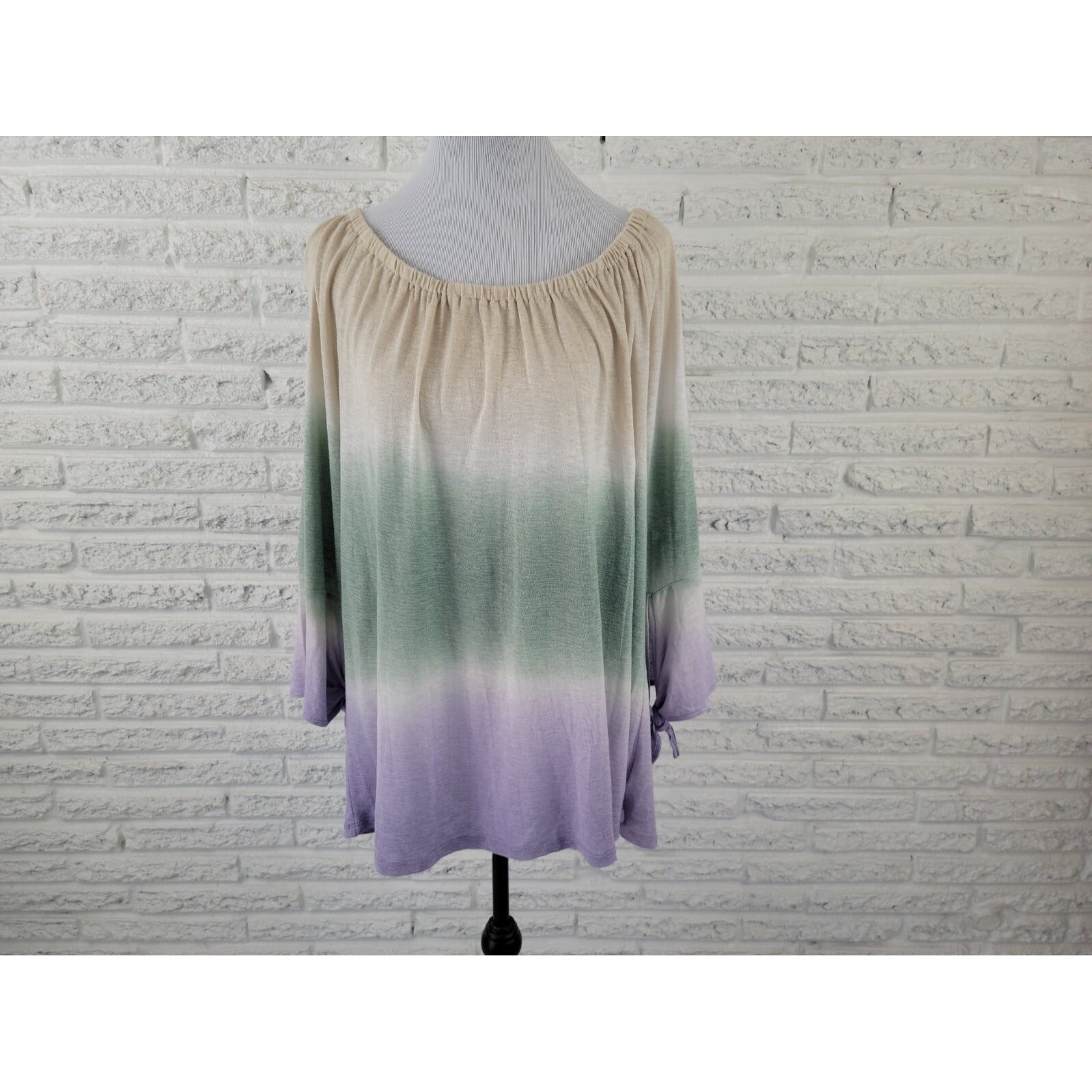 Seven 7 Womens Top Extra Large On Off Shoulder Ombre Tied 3/4 Sleeve Casual