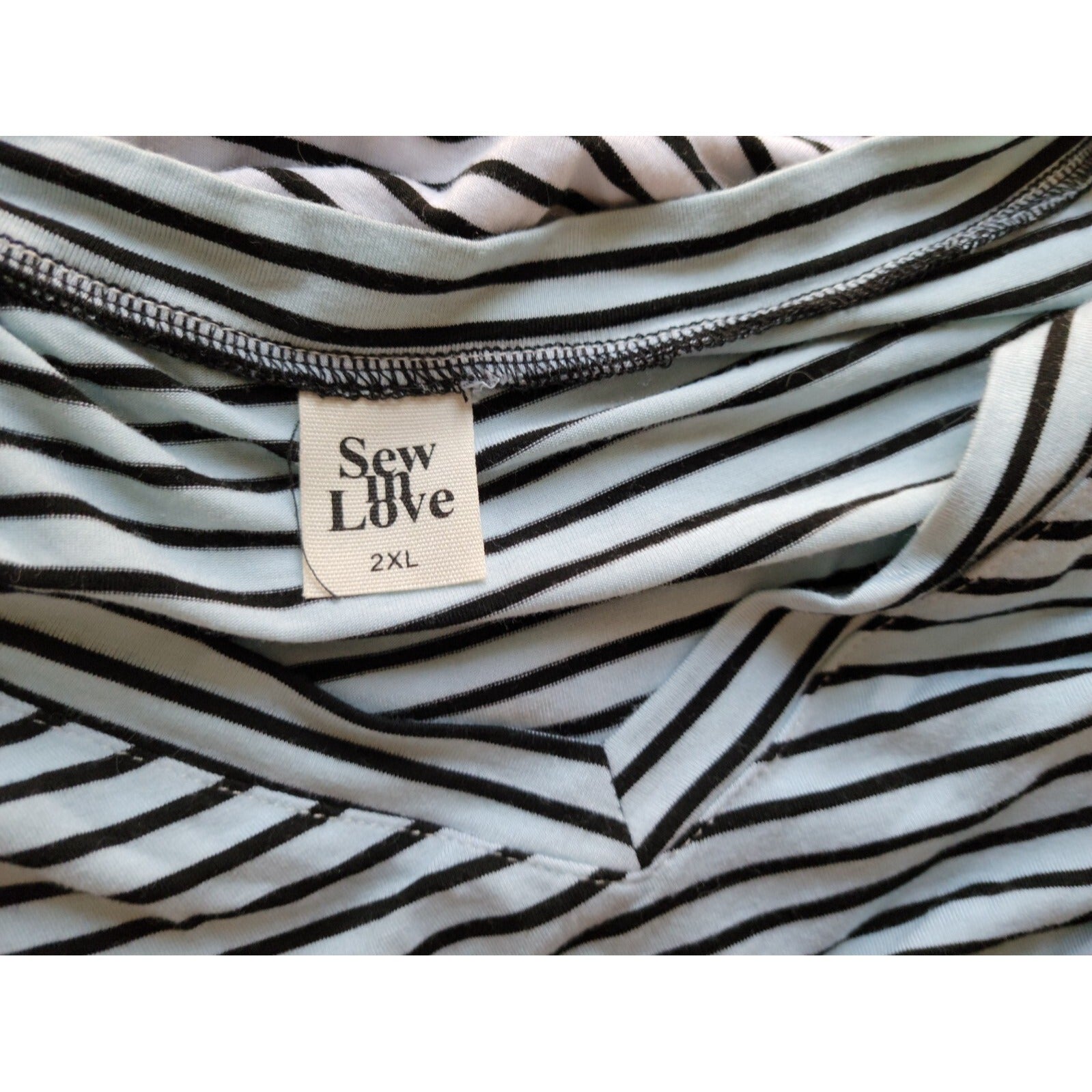 This Sew in Love Women's Top in size 2XL is the perfect addition to your casual wardrobe. The black and striped design with a V-neck and short sleeves make it a versatile piece that can be worn in any season. The pullover closure and stretchy jersey fabric provide comfort and ease of wear. Made with a blend of spandex and viscose, this T-shirt is easy to maintain with hand wash only. The regular fit and casual sleeve make it a great choice for an everyday basic. Whether you're dressing up or down, this top is a must-have.