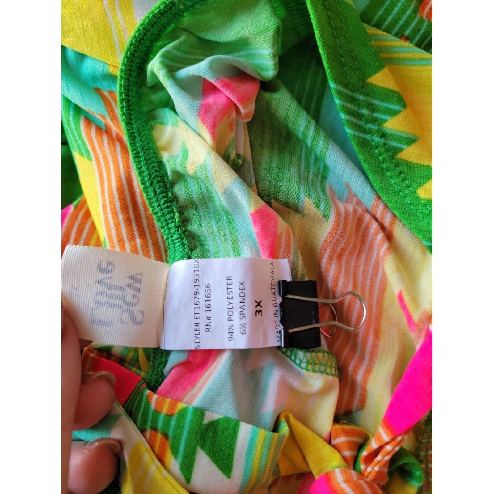 Sew In Love Womens Top 3X Tee Short Sleeve Southwestern Keyhole Green Geometric