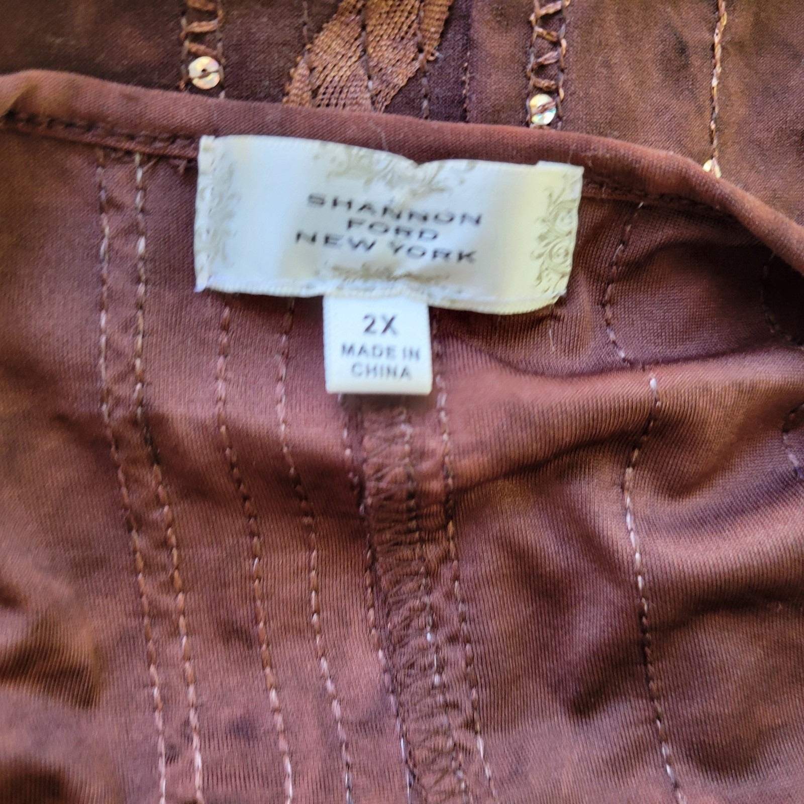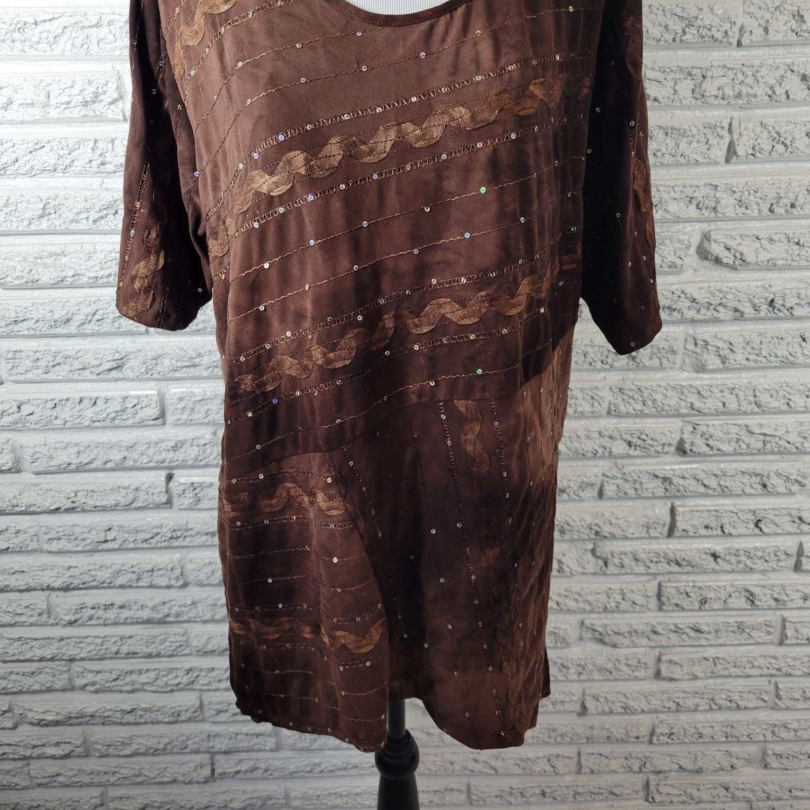 Shannon Ford Womens Top 2X Plus Tunic Brown Asymmetric Sequins Poly Blend Comfy