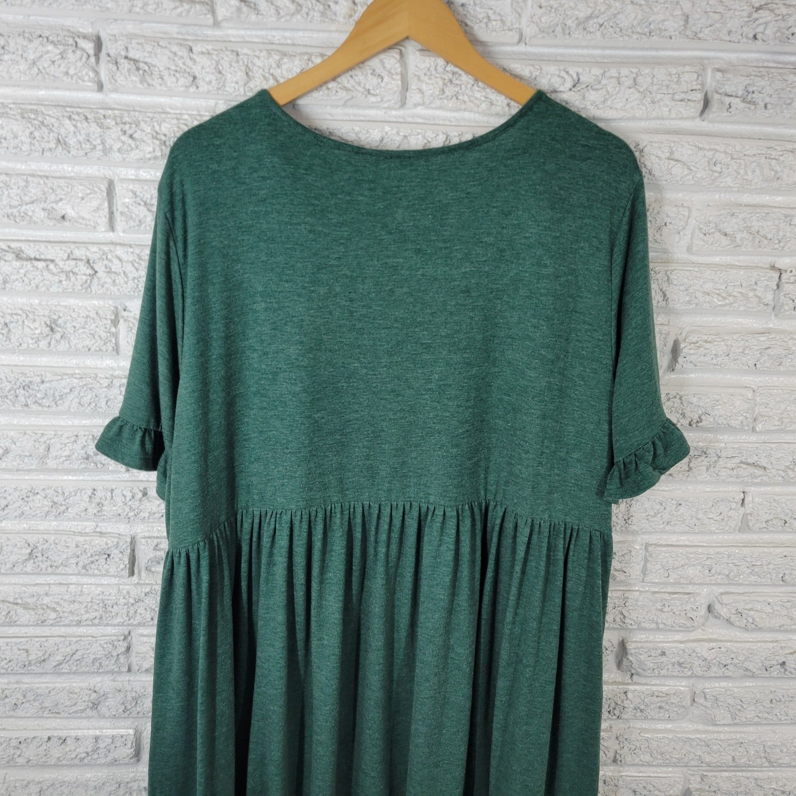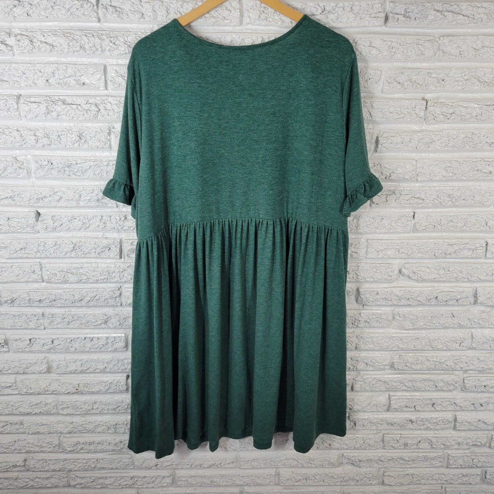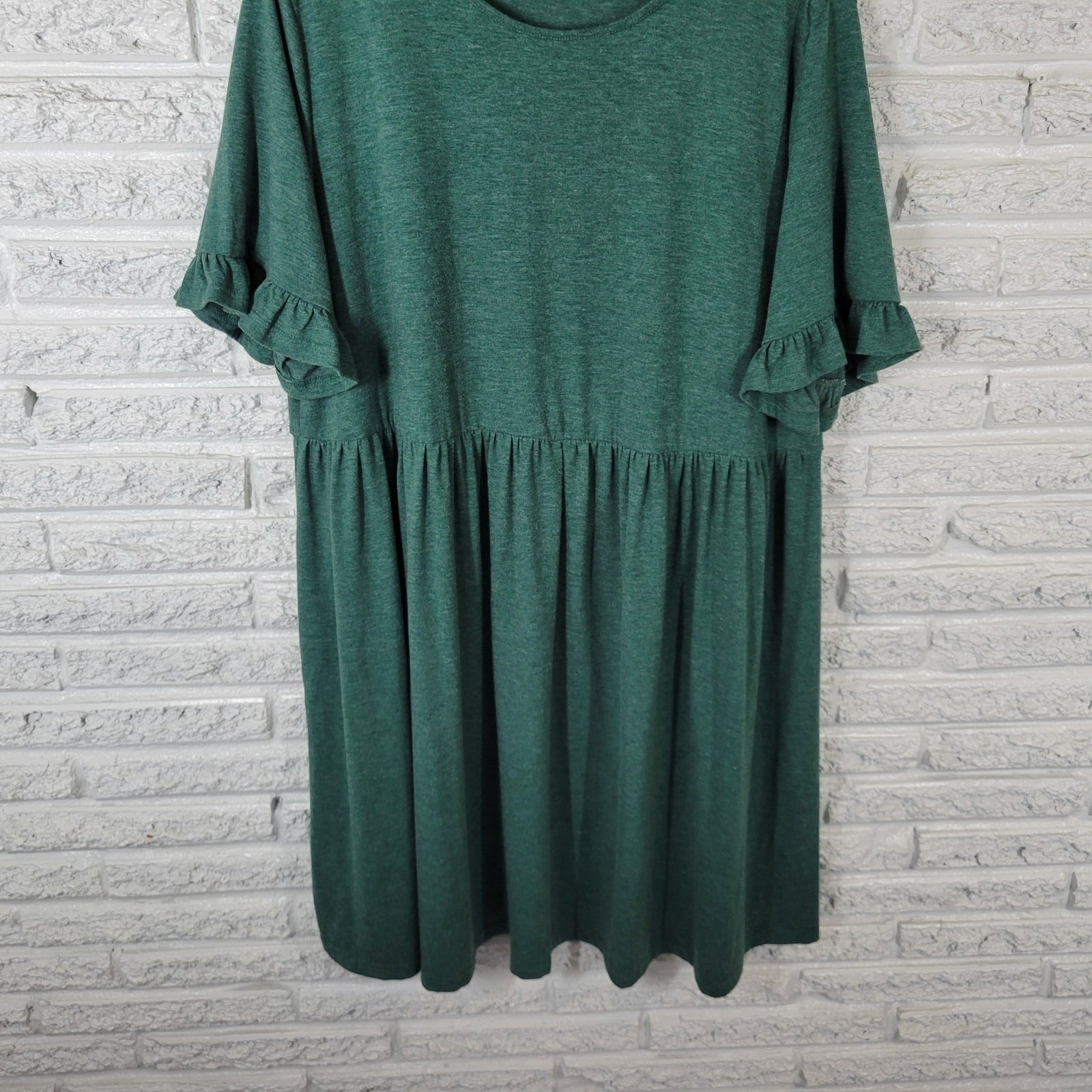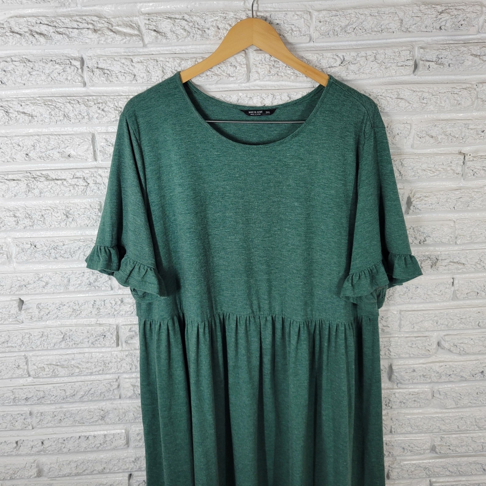 Shein Curve Womens Dress 3XL Plus Bell Sleeve Green Comfy Casual Knee Length