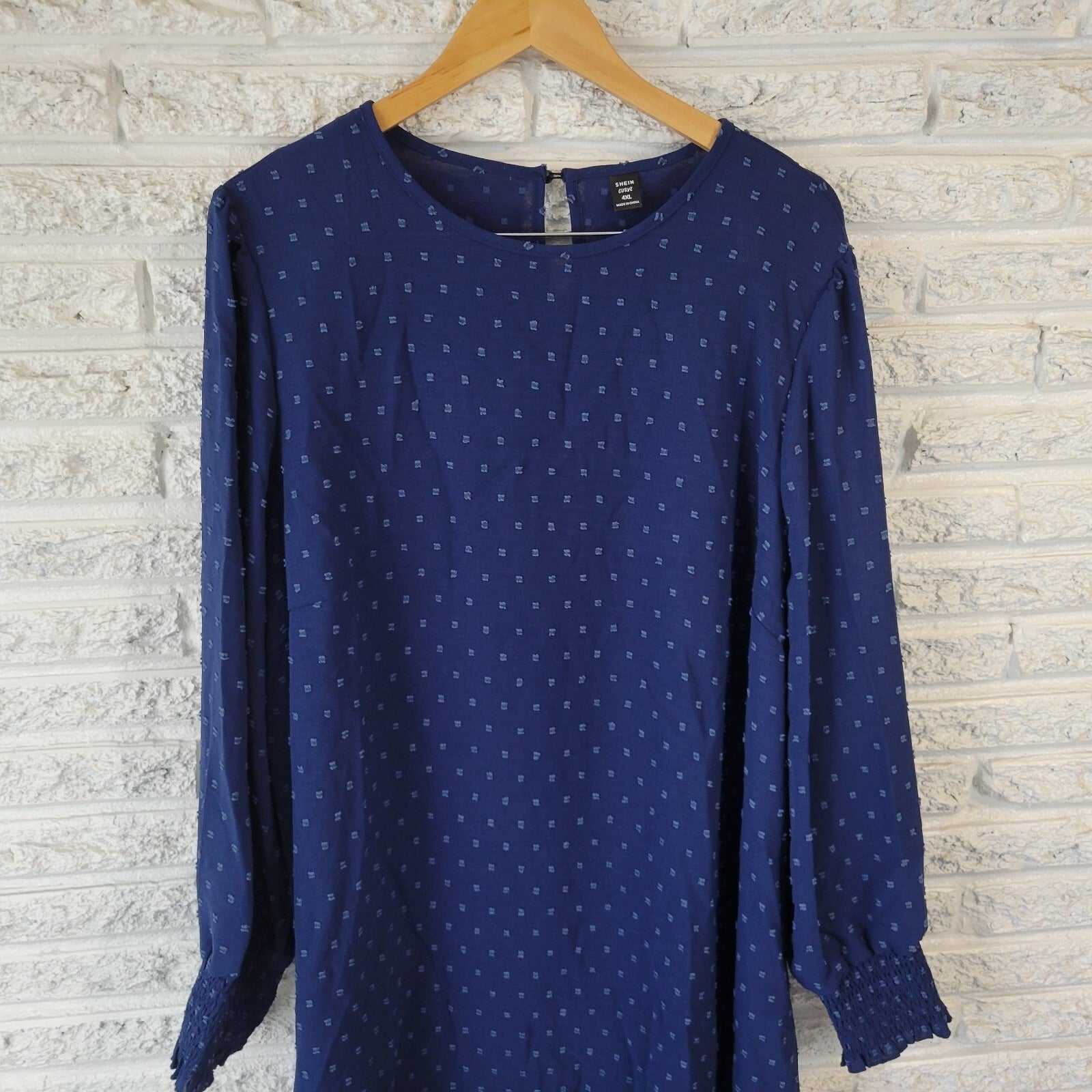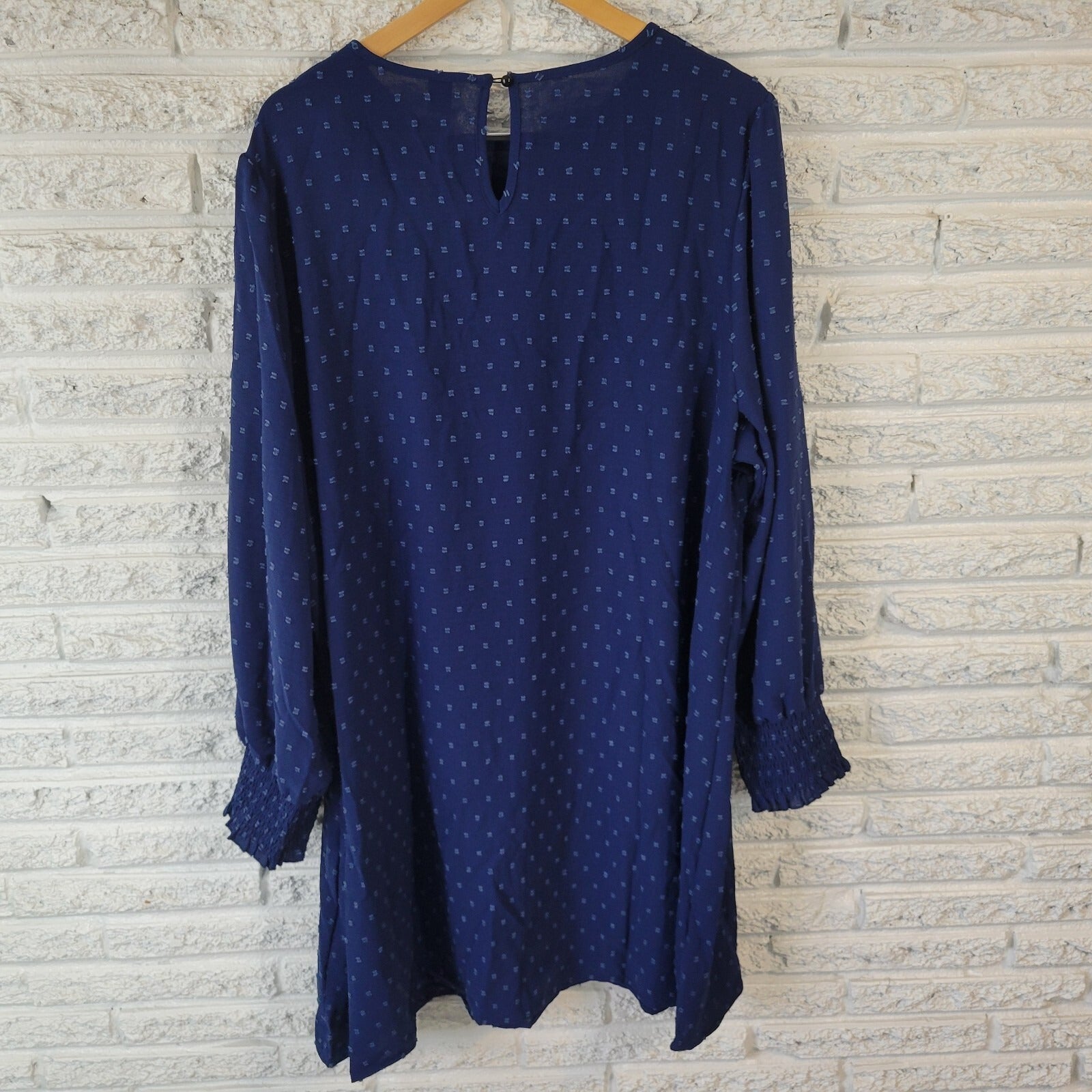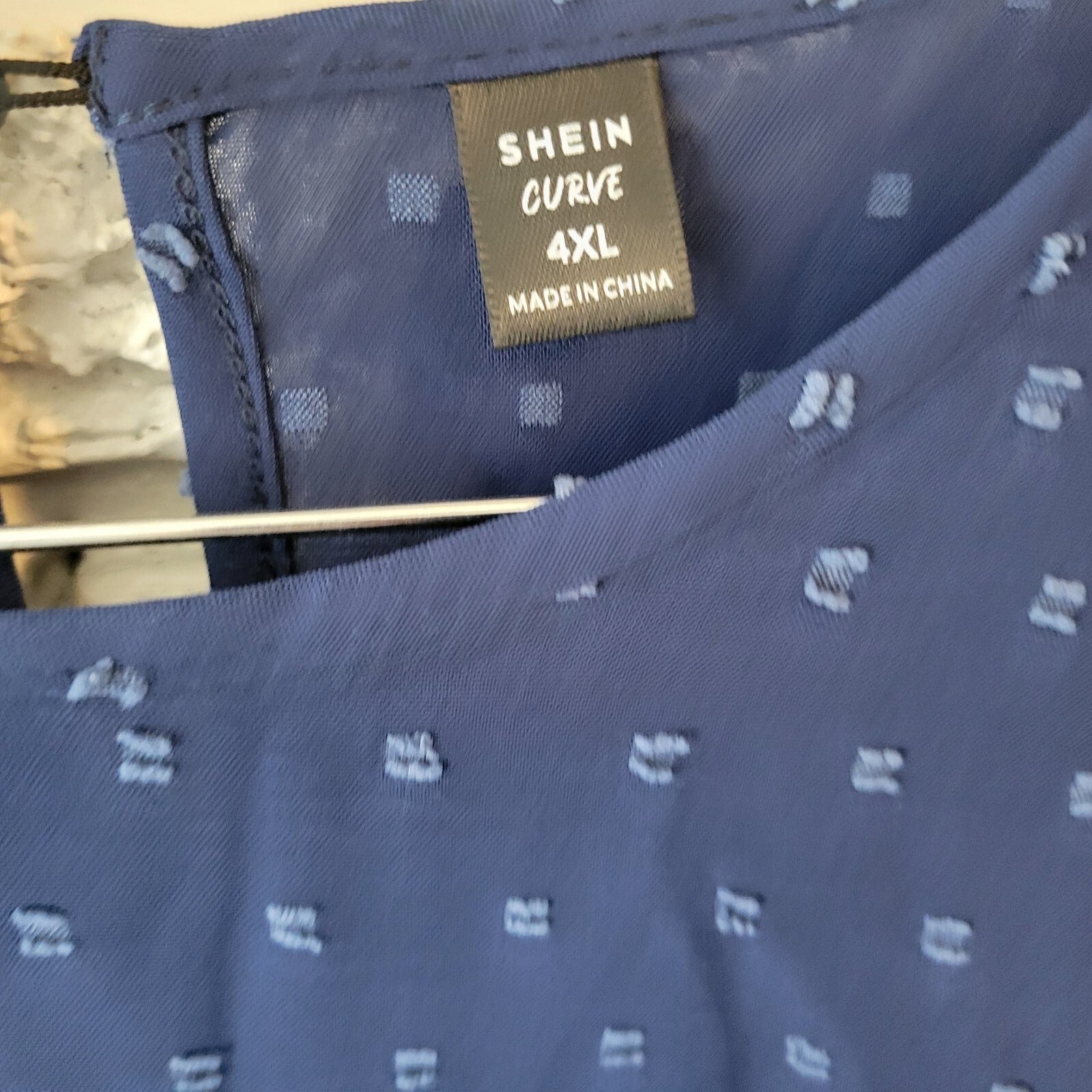 Shein Curve Womens Dress 4XL Plus Long Sleeve Blue Sheer Swiss Dot Lightweight