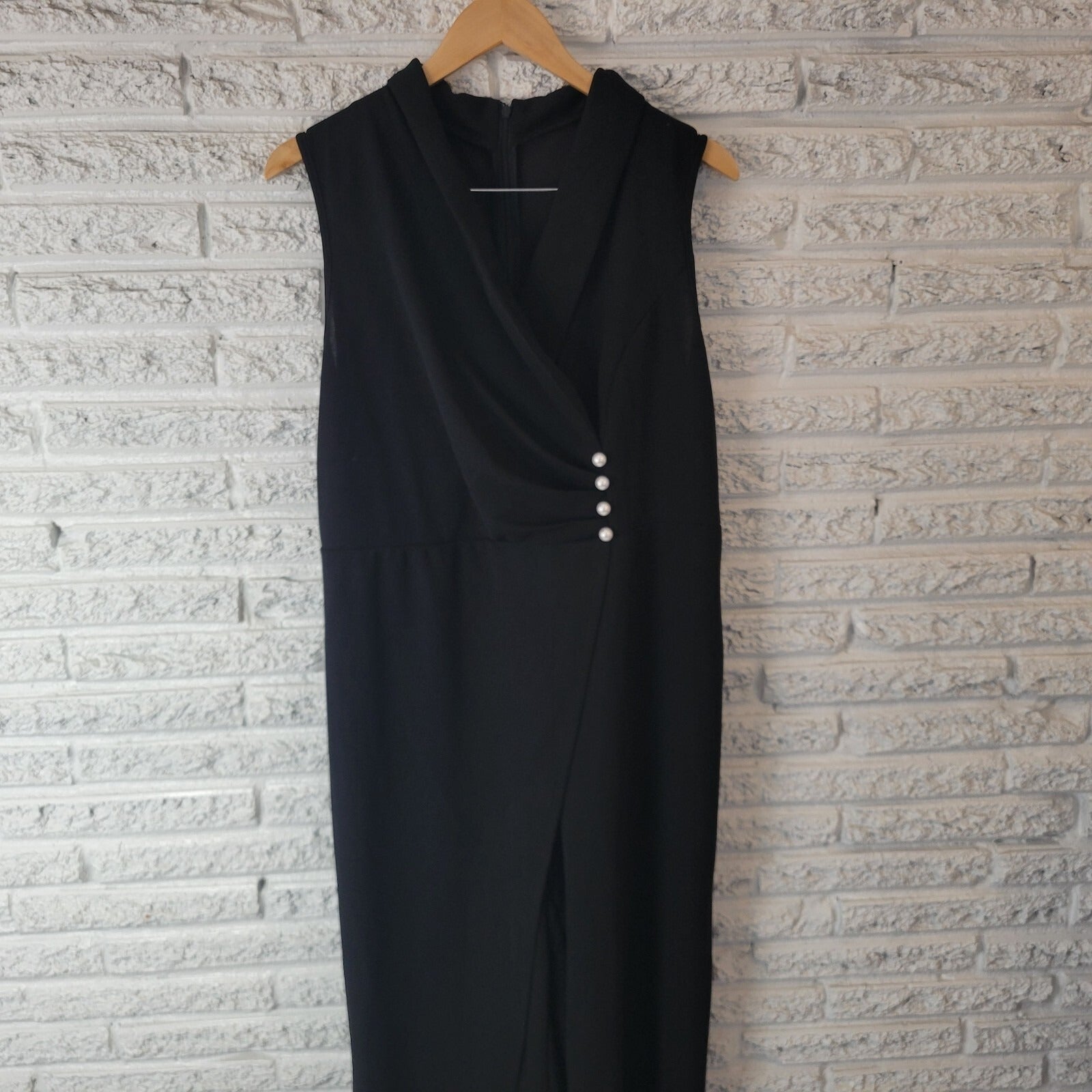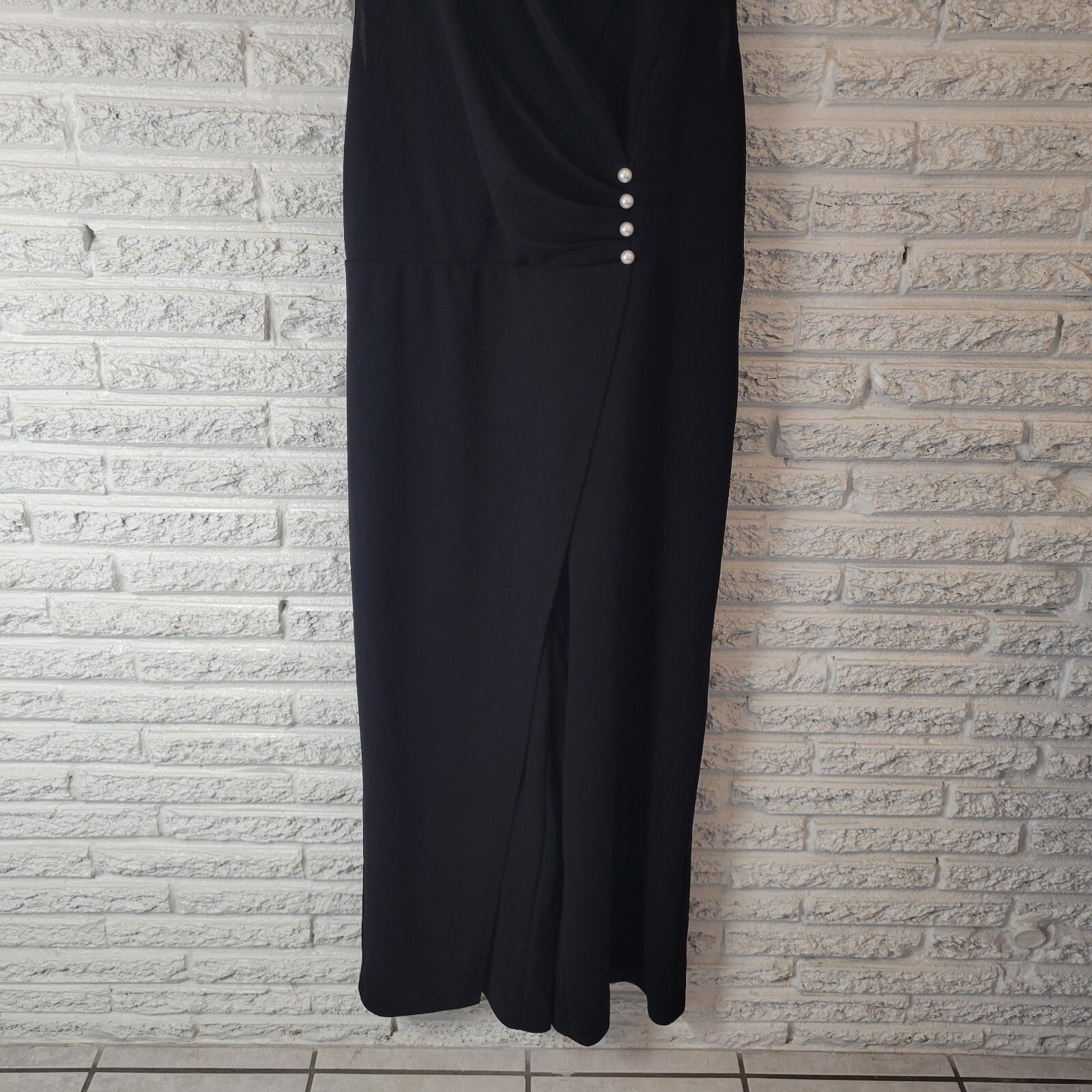 The Shein Curve Women's Jumpsuit in size XL Plus is a stylish and versatile piece perfect for both parties and business meetings. This sleeveless jumpsuit features a zip closure, V-neckline, and wide-leg design, offering a comfortable and flattering fit. Made from a black polyester blend, this jumpsuit is easy to care for with machine washable instructions. Ideal for all seasons, this jumpsuit is a chic and practical addition to any woman's wardrobe, with a touch of button accents adding a fashionable flair.