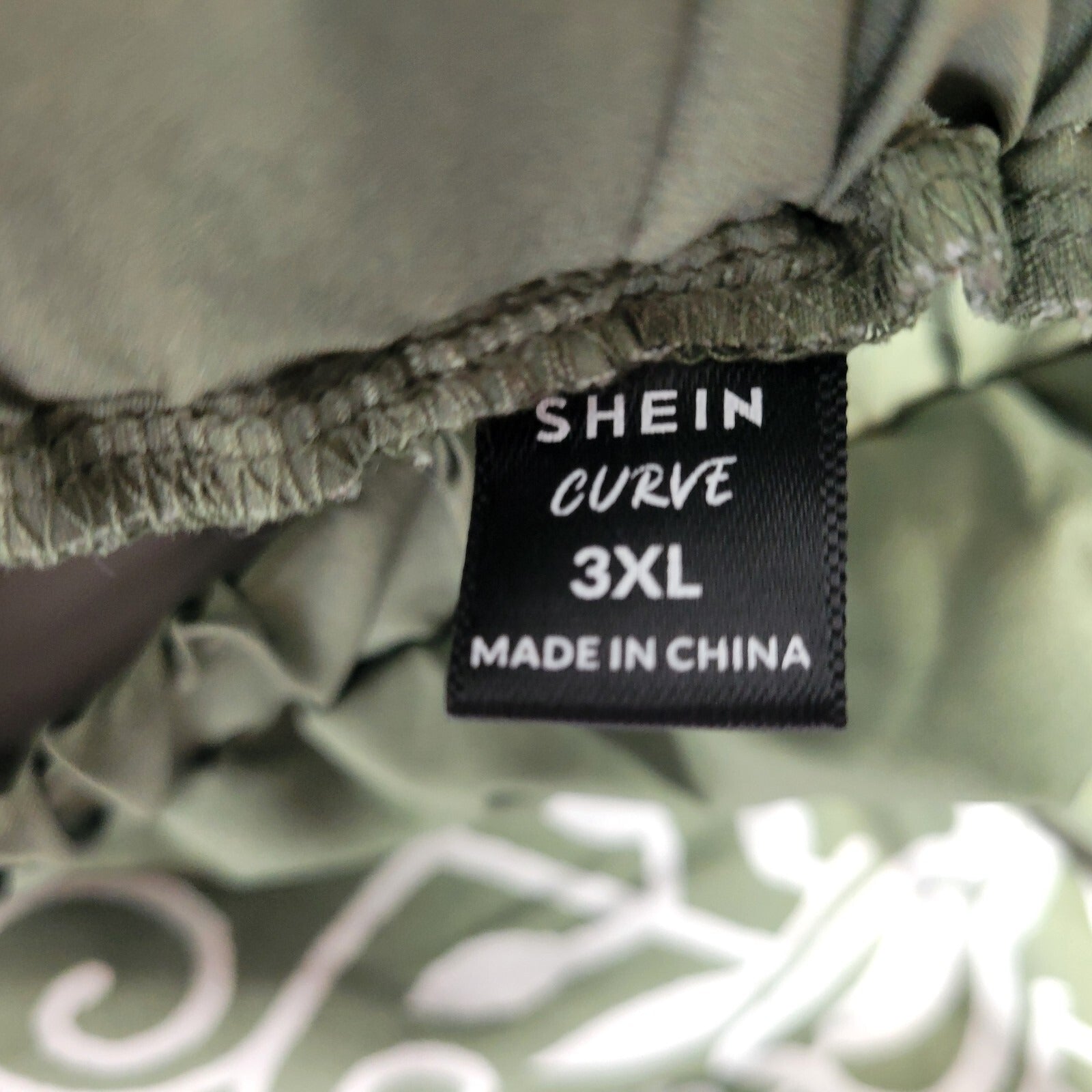 Shein Curve Womens Shorts 3XL Plus Green Bird Mural Geometric Lightweight Fringe