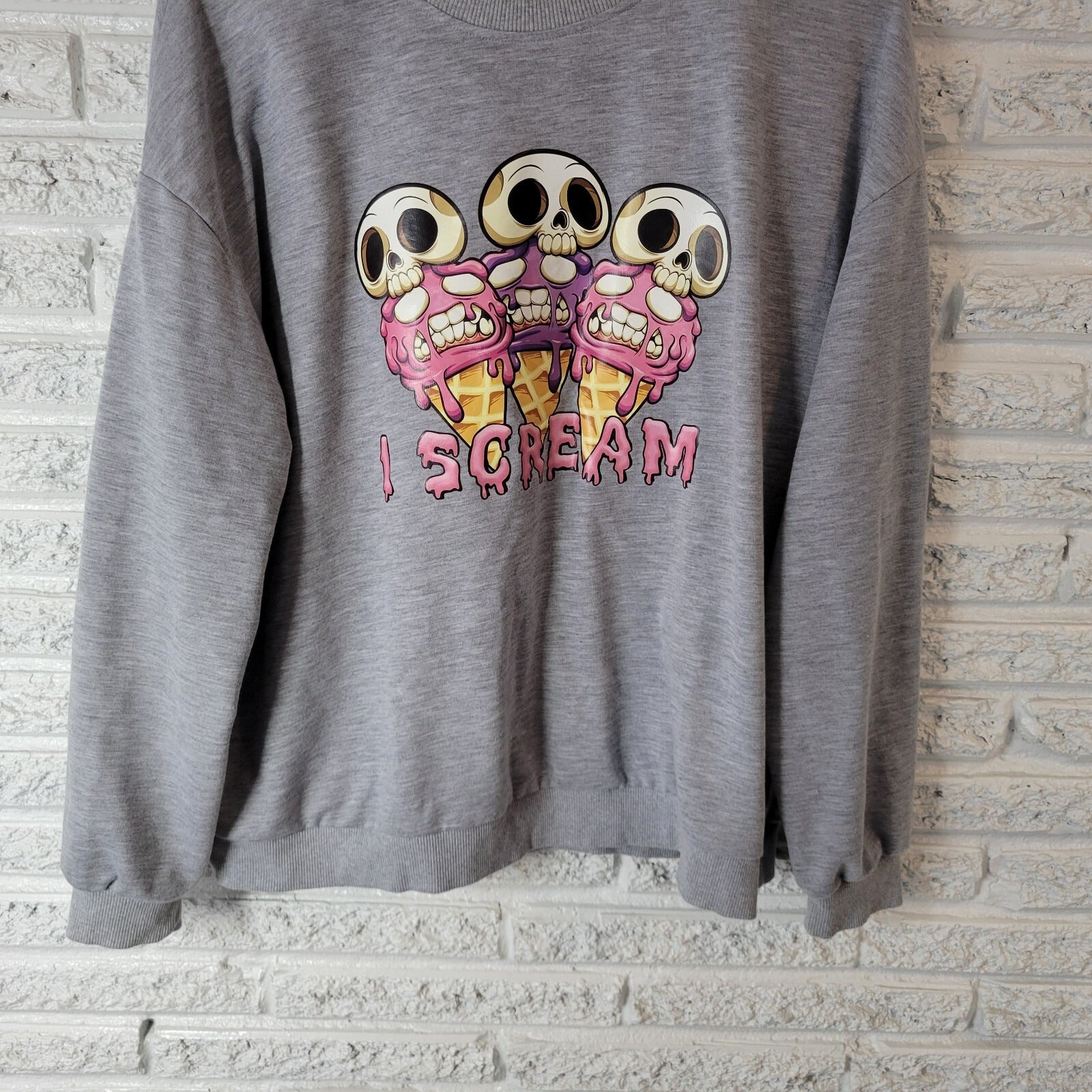 Shein Curve Womens Sweatshirt 2XL Plus I Scream for Ice Cream Skull Activewear