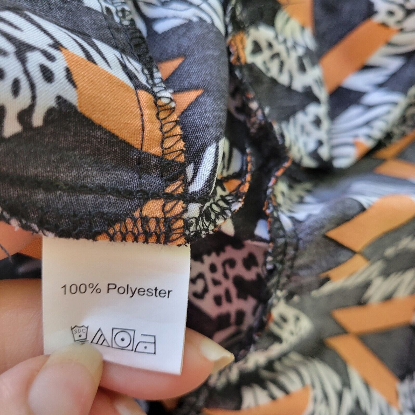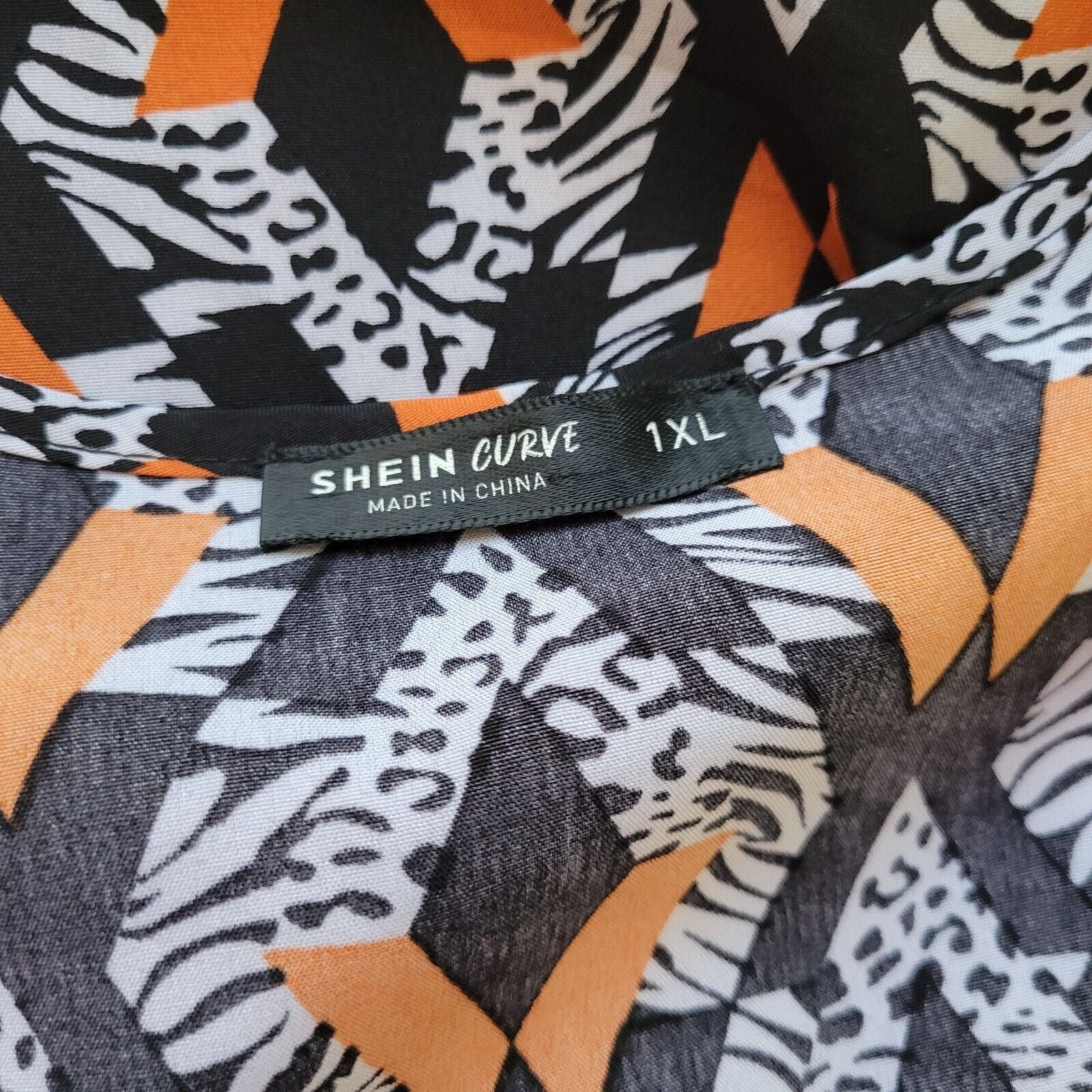 Shein Curve Womens Top 1XL Plus Crop Smock Sleeve Side Zip Orange Geometric