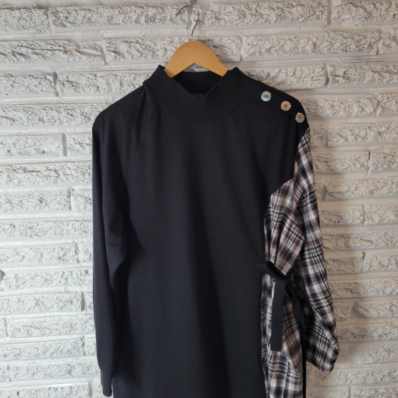 Shein Curve Womens Top 2XL Plus Tunic 3/4 Sleeve Black Plaid Sash Mock Turtle