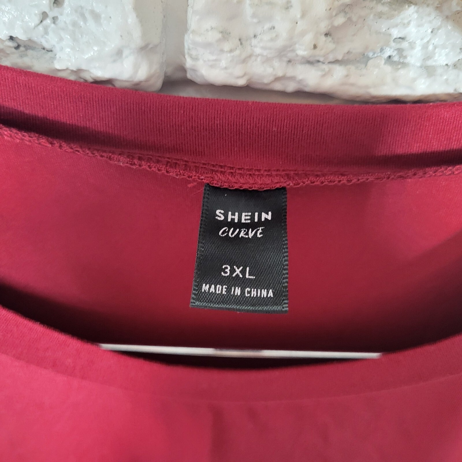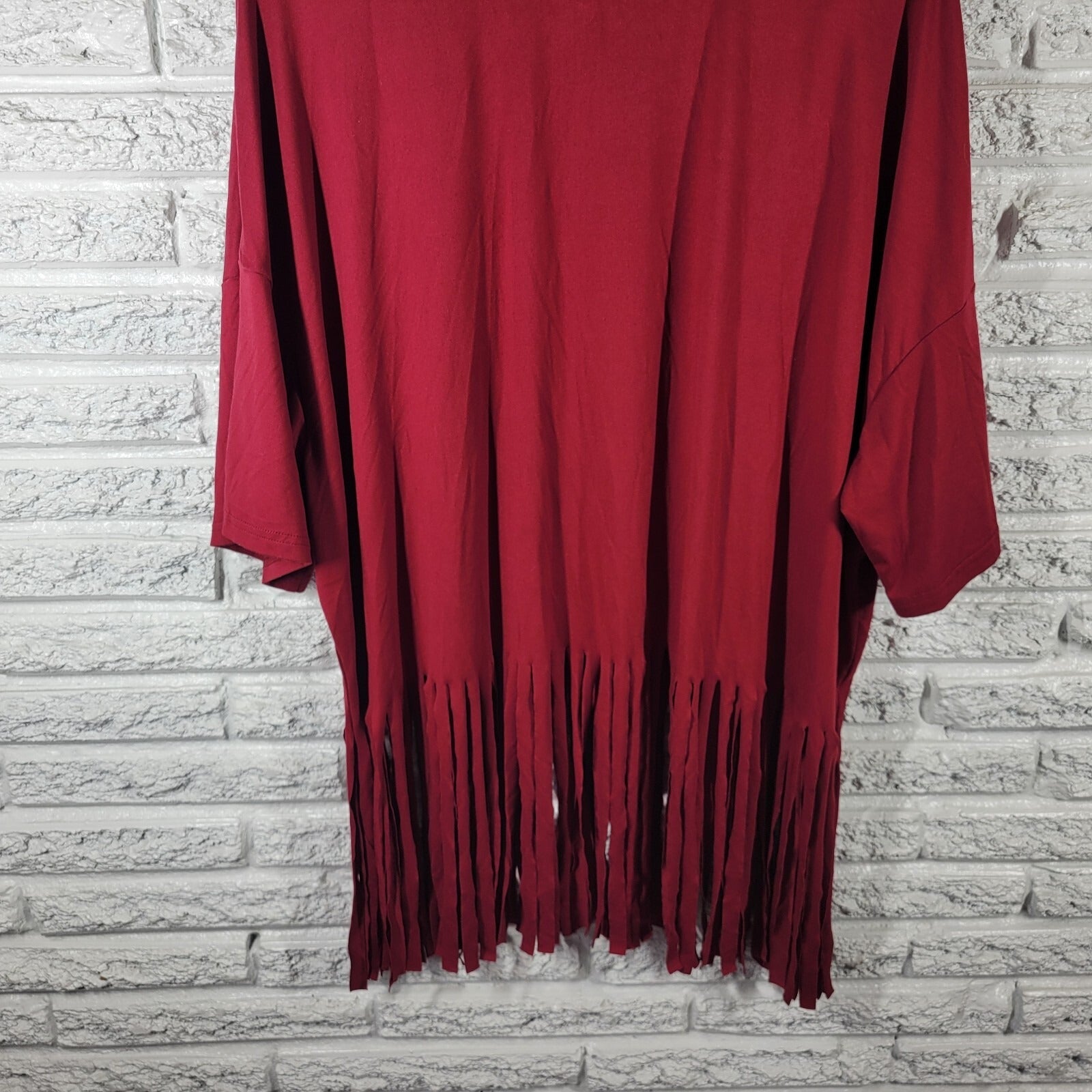 Shein Curve Womens Top 3XL Plus Tee Boho Burgundy Poly Blend Fringe Lightweight