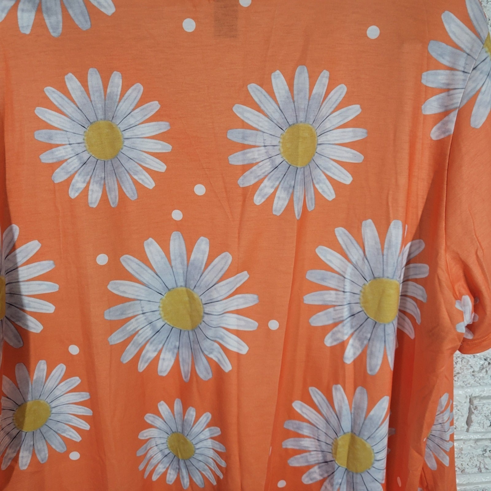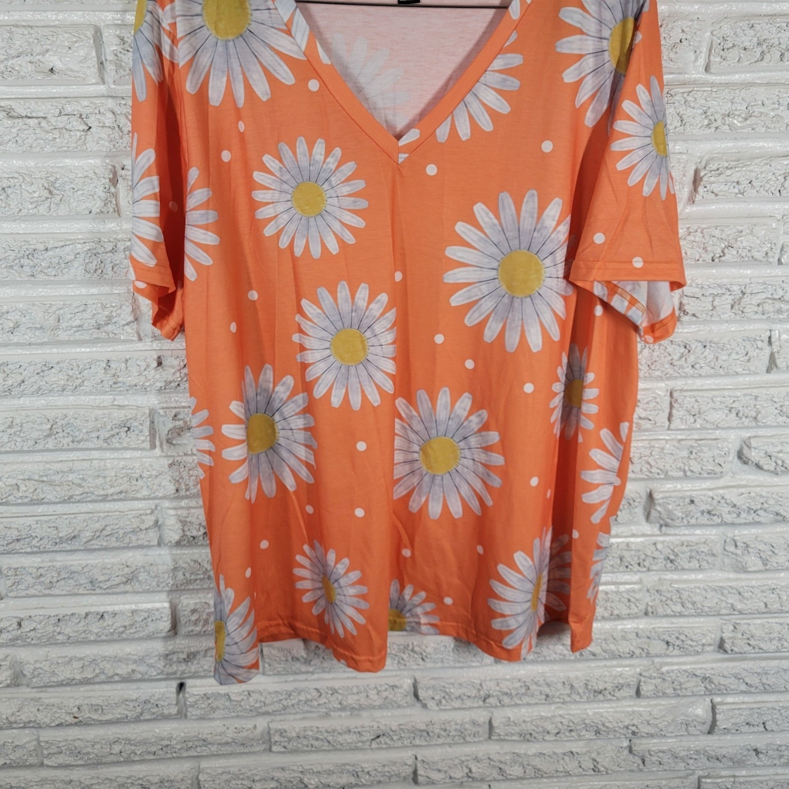 Shein Curve Womens Top 3XL Plus Tee Daisies Orange Floral Poly Blend Comfy