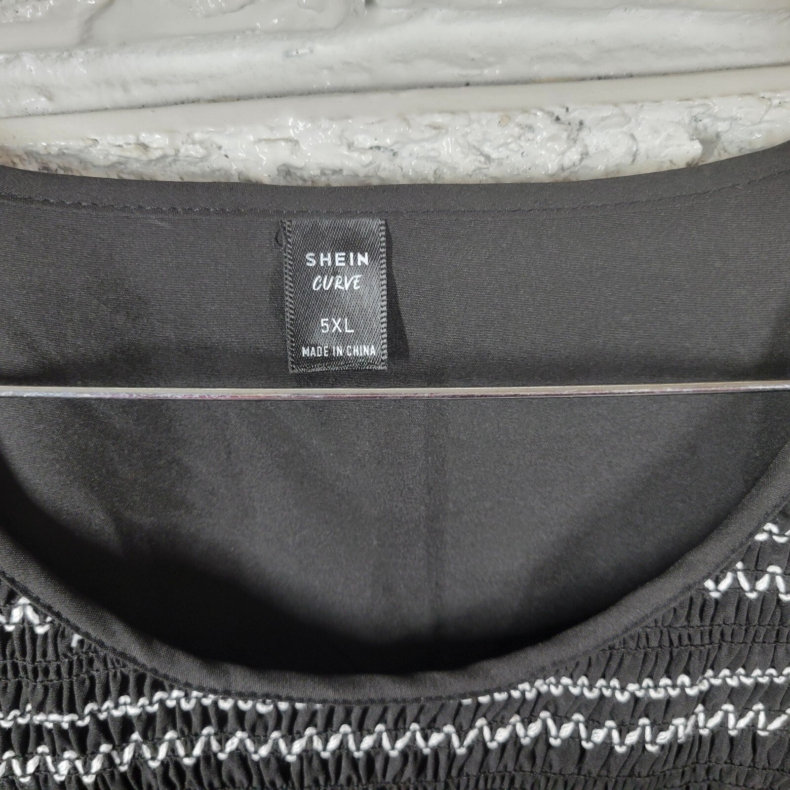 Shein Curve Womens Top 5XL Plus Peasant Cinched Black Lightweight Poly Blend