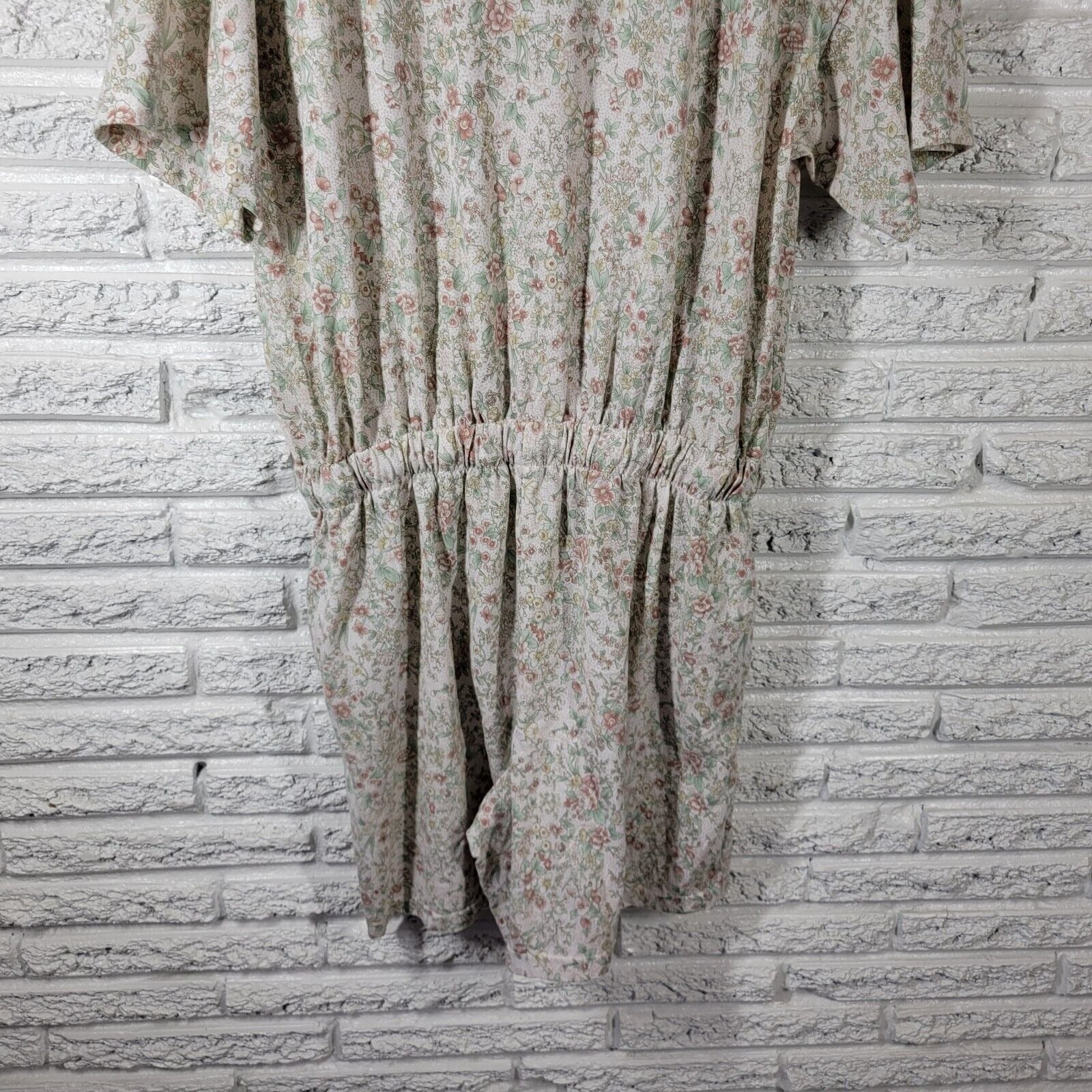 Shenanigans Women Romper 20 Plus Shorts Tan Floral Poly Blend Drawstring Pockets