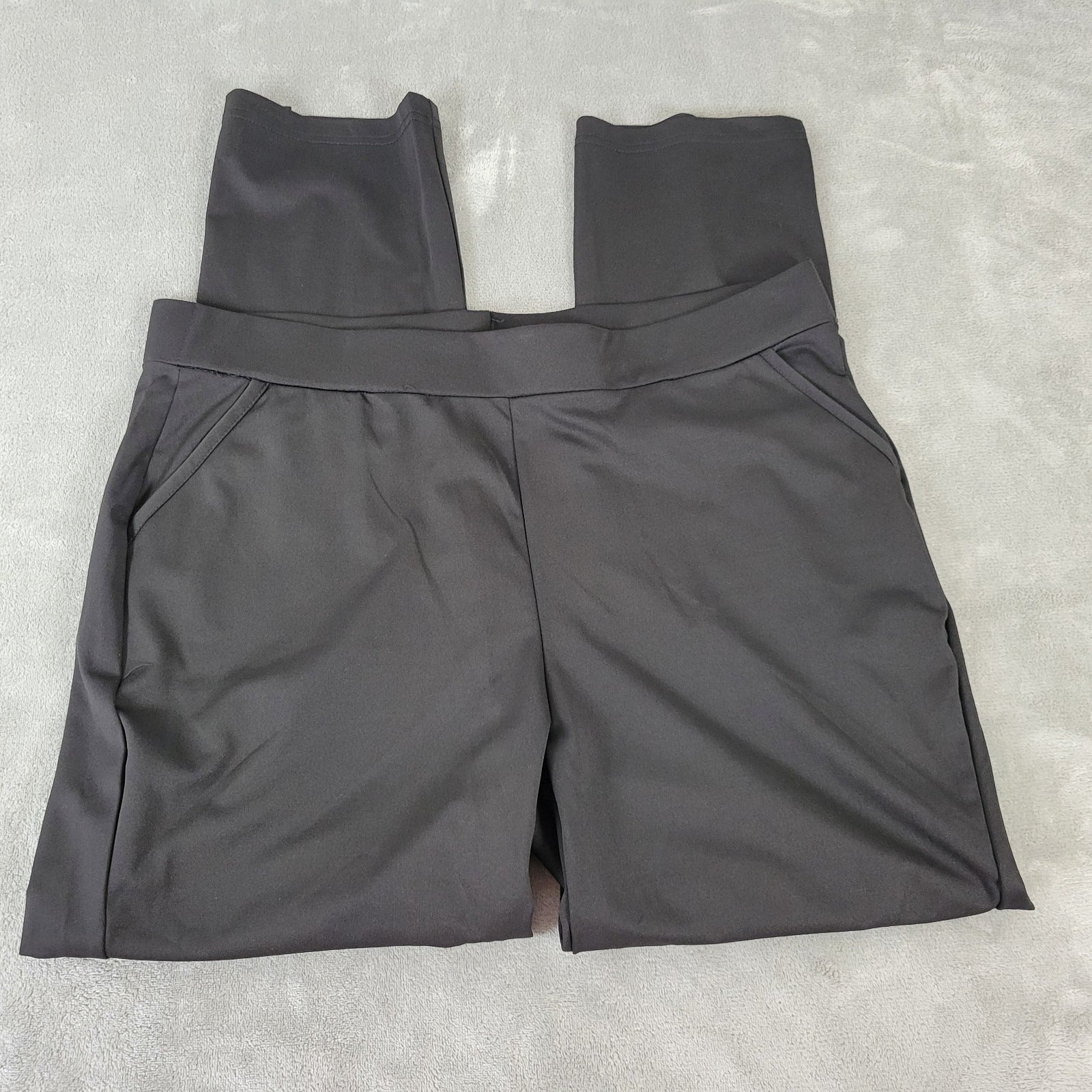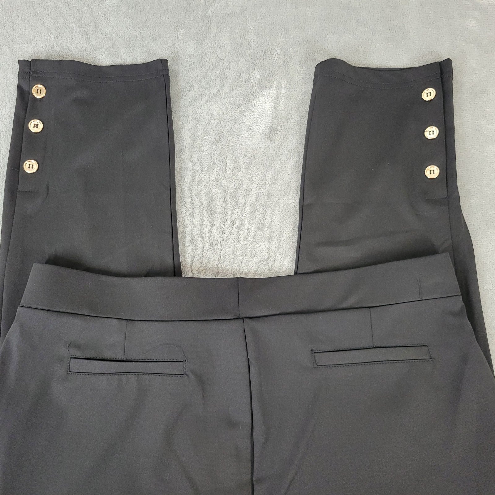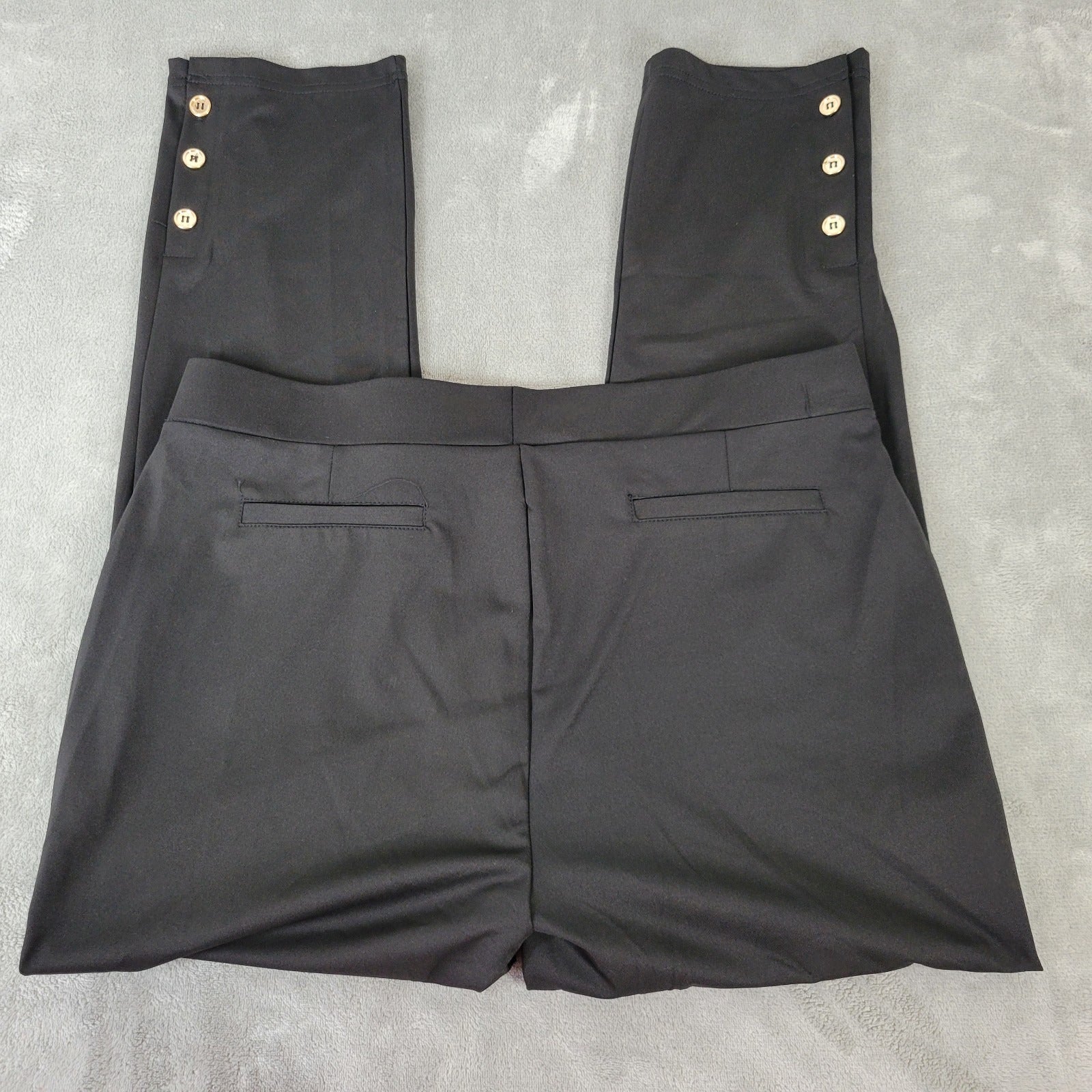 Shosho Womens Pants 1X Plus Cropped Pull On Black Poly Blend Deco Buttons Comfy