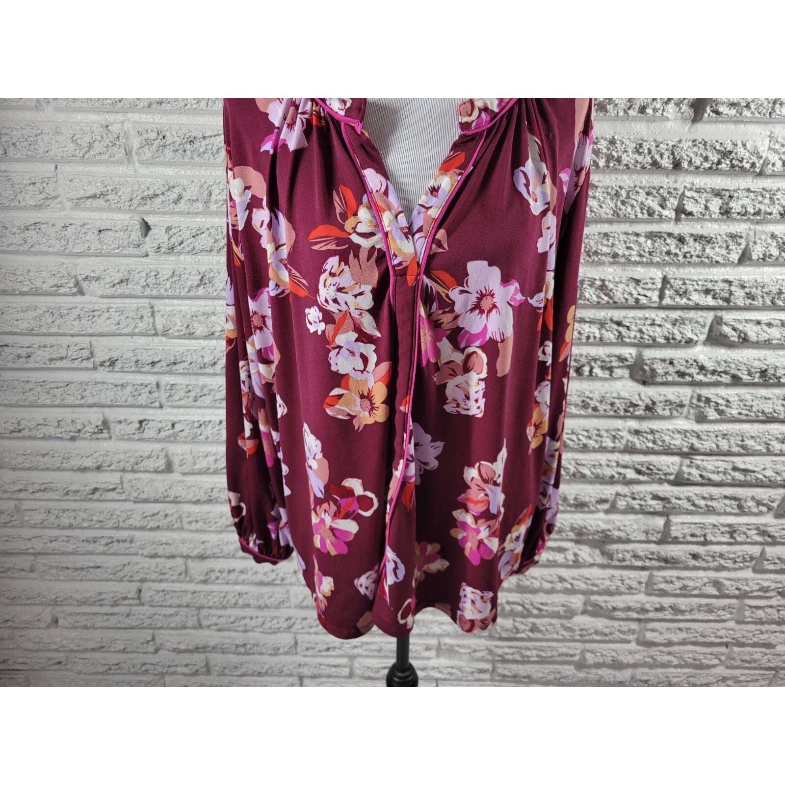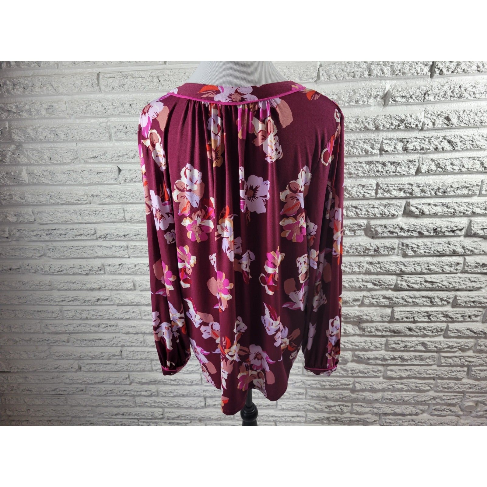Simply Emma Womens Top 3X Plus Long Sleeve Purple Floral Poly Blend Career