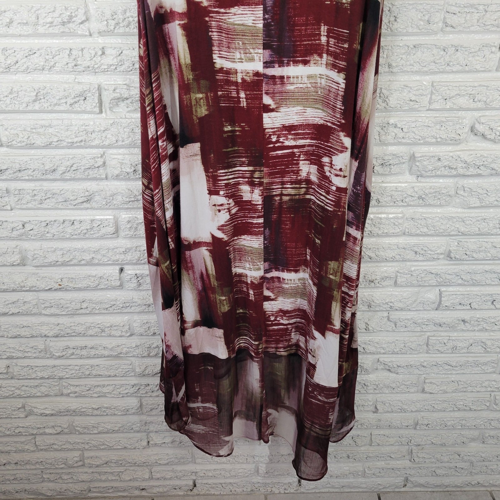 Simply Vera Wang Womens Dress XL Tank Hi Low Chiffon Hem Burgundy Watercolor