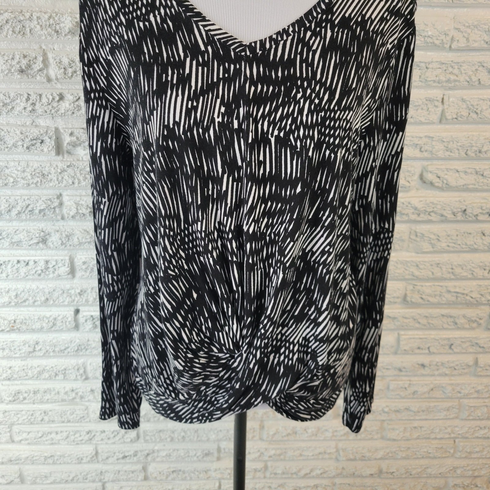 Simply Vera Wang Womens Top XL Long Sleeve Black Geometric Lightweight Office