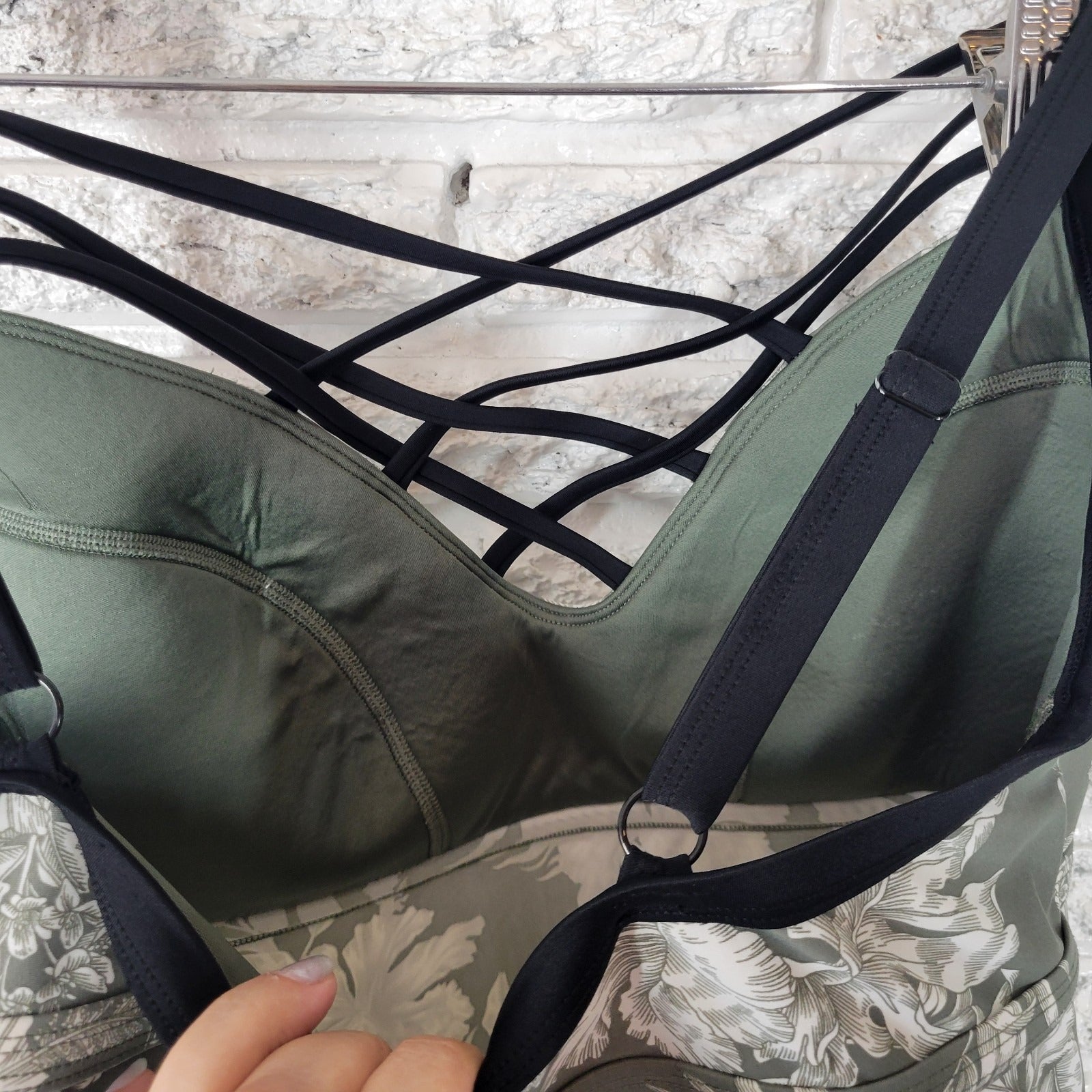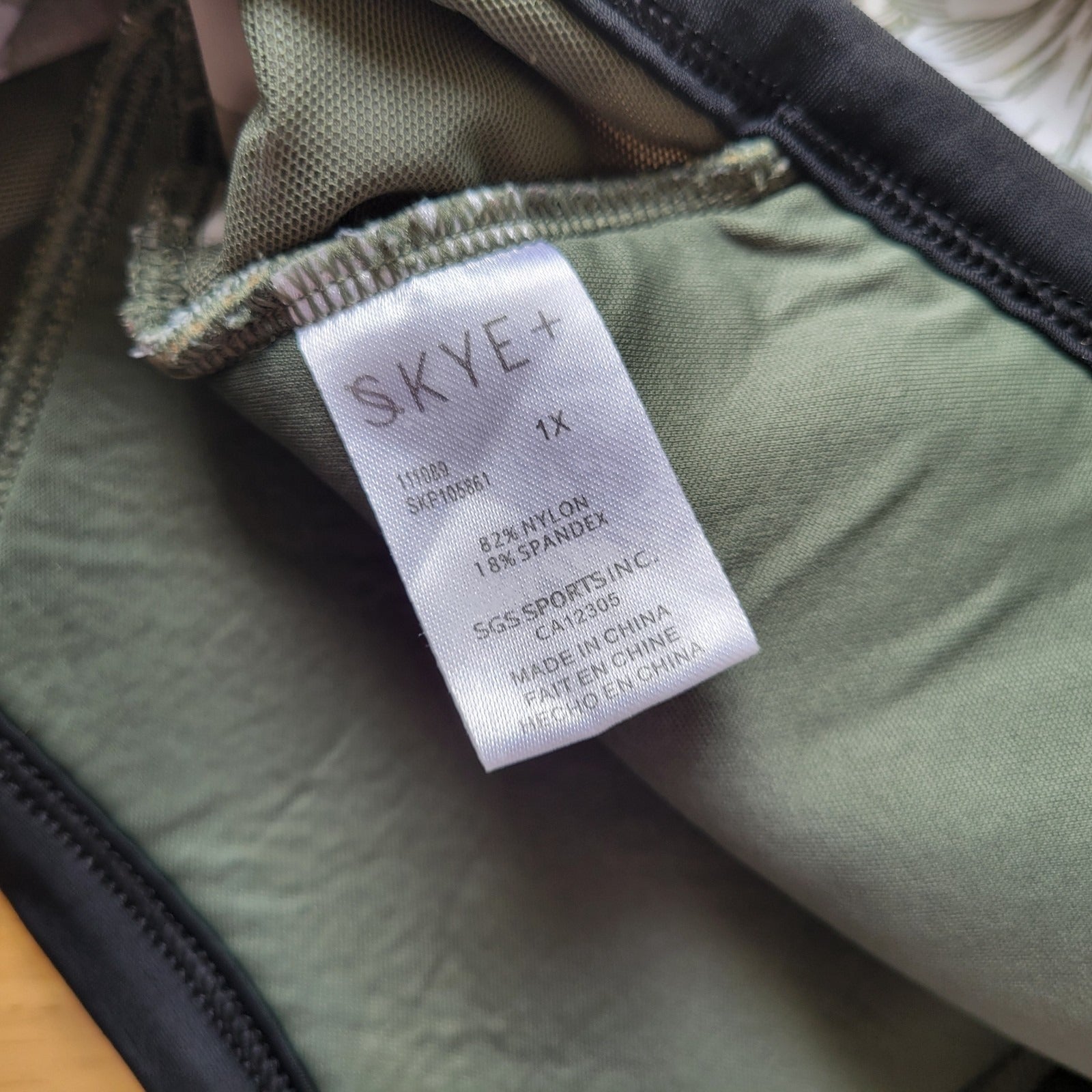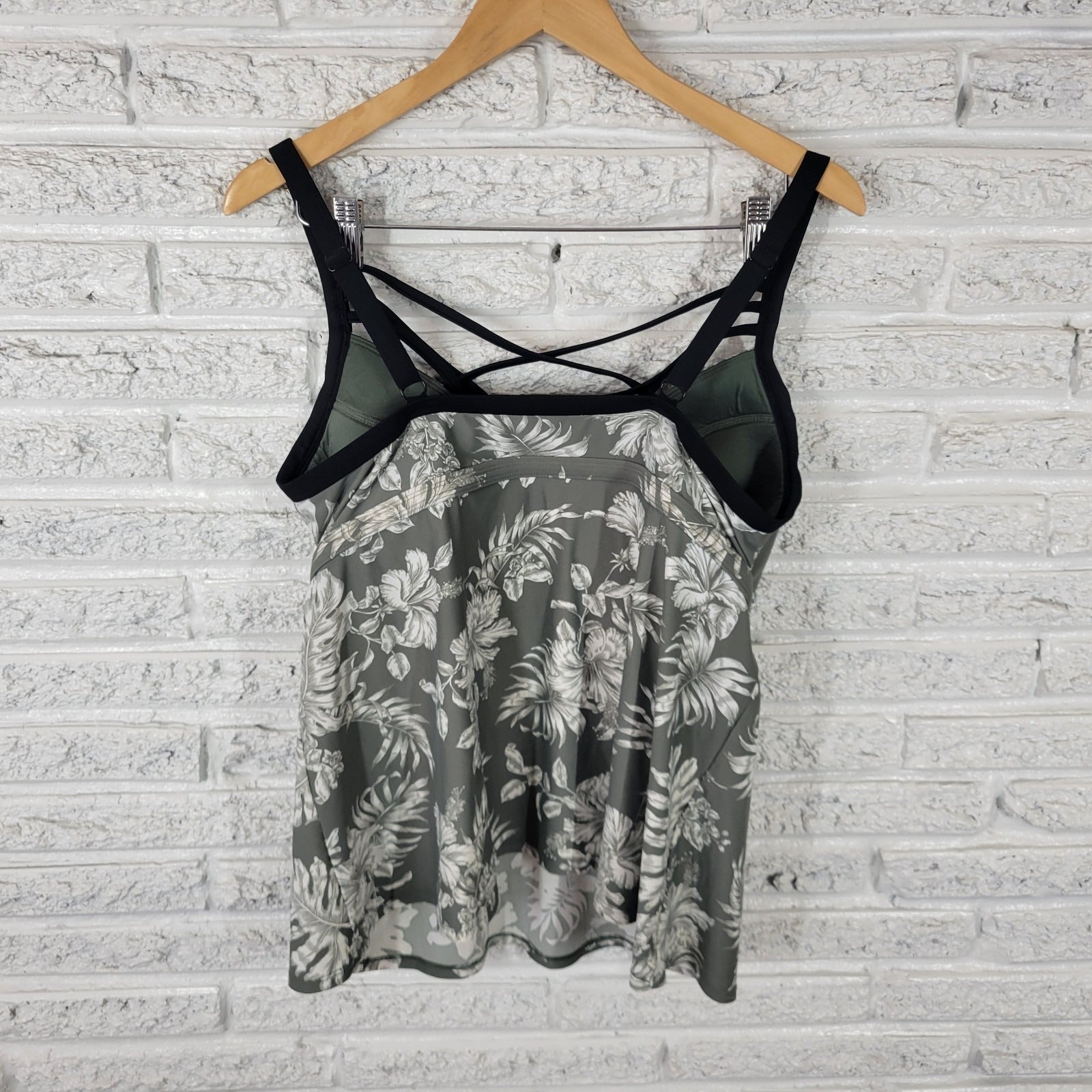 Skye Womens Swim Top 1X Plus Bra Gray GreenFloral Adjustable Straps Lattice Neck