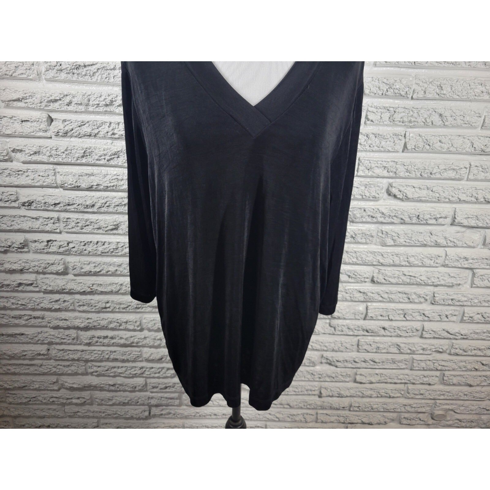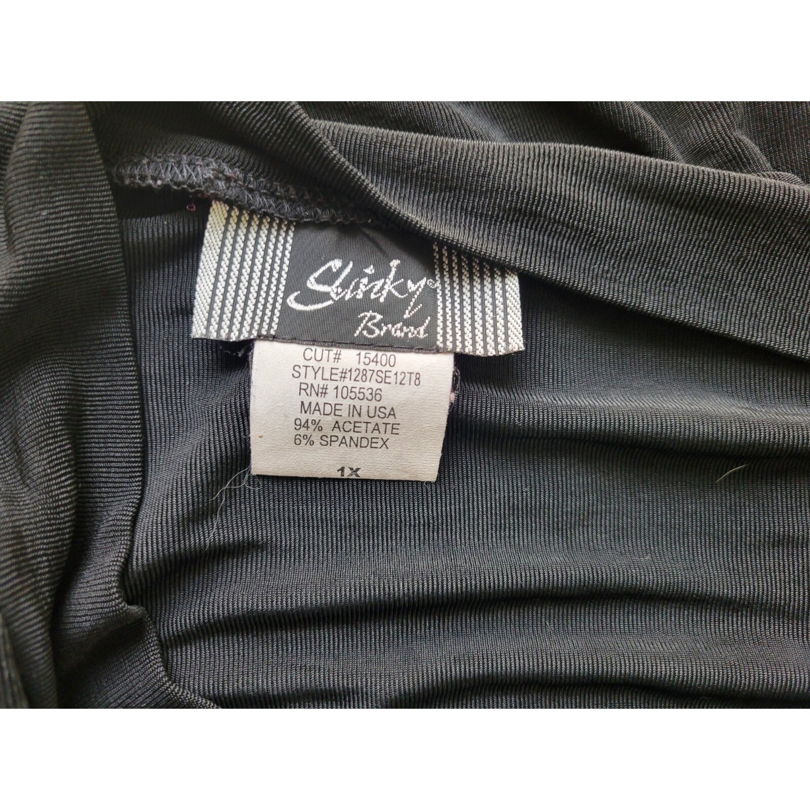 Slinky Brand Women Top 1X Plus Tunic 3/4 Sleeve Black Acetate Travel Knit Office