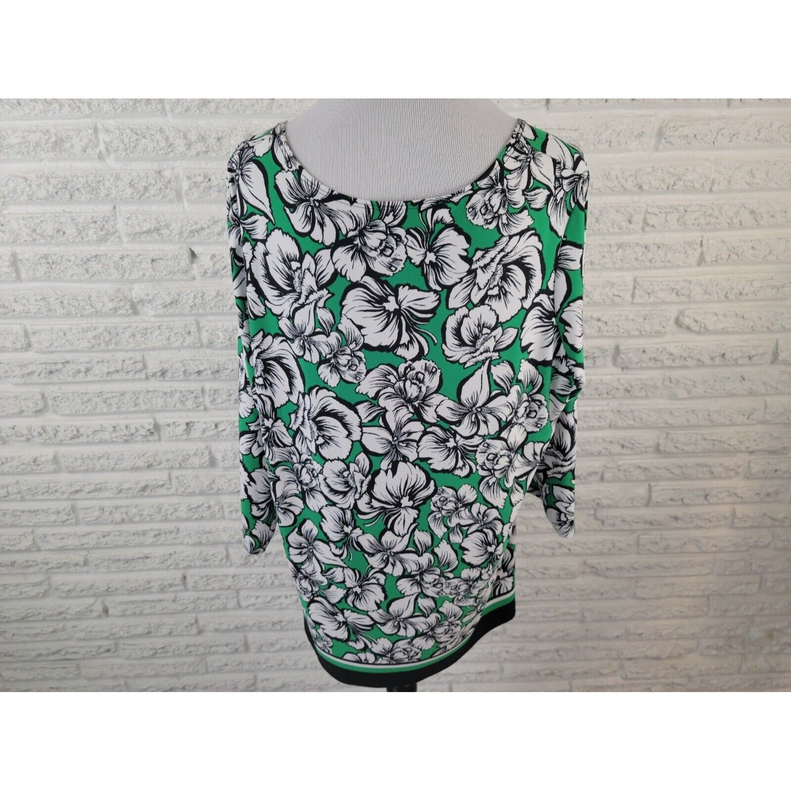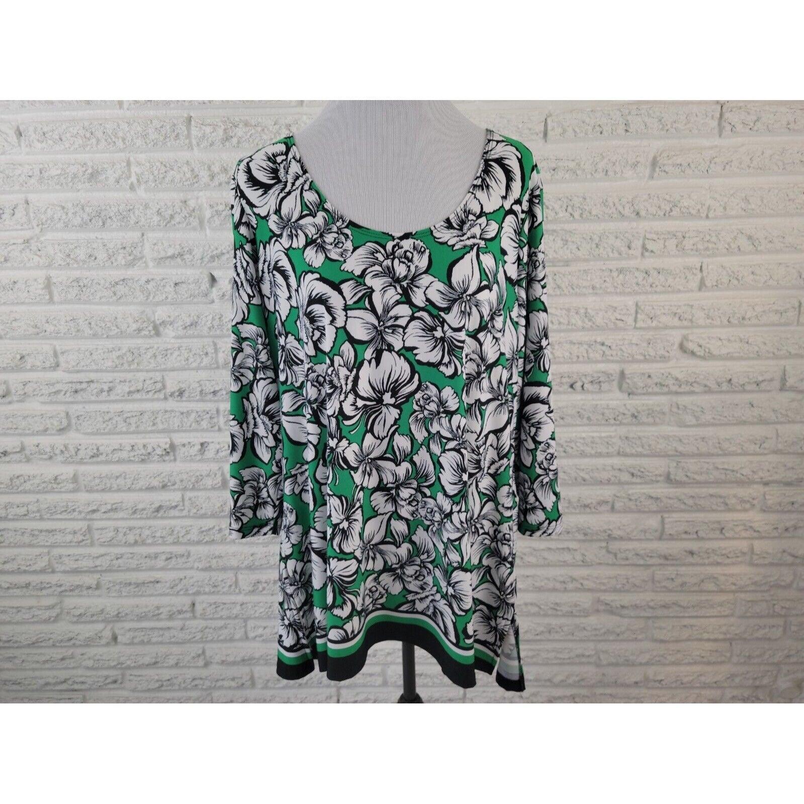 Slinky Brand Women Top 1XP Plus Petite Tunic 3/4 Sleeve Pullover Green Floral