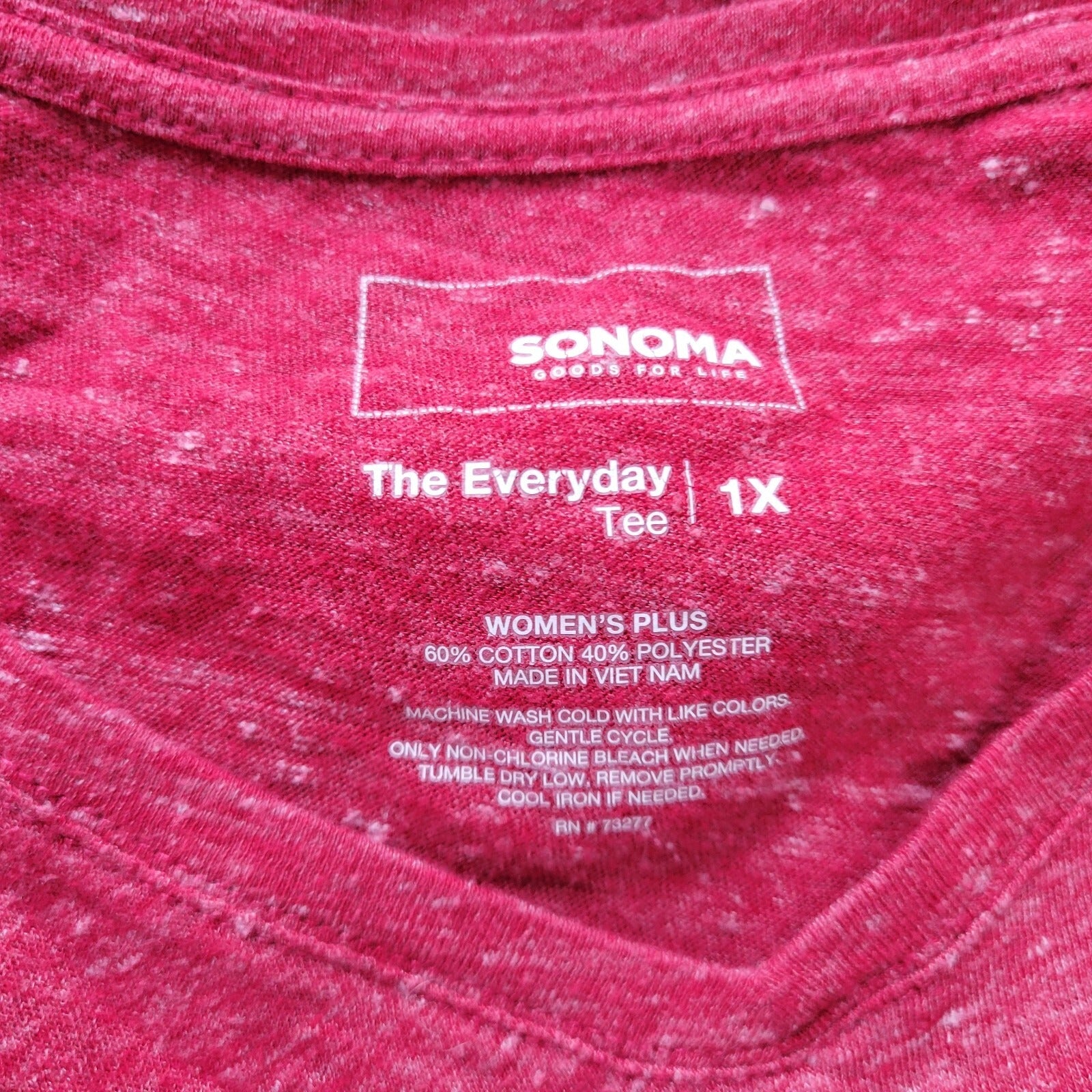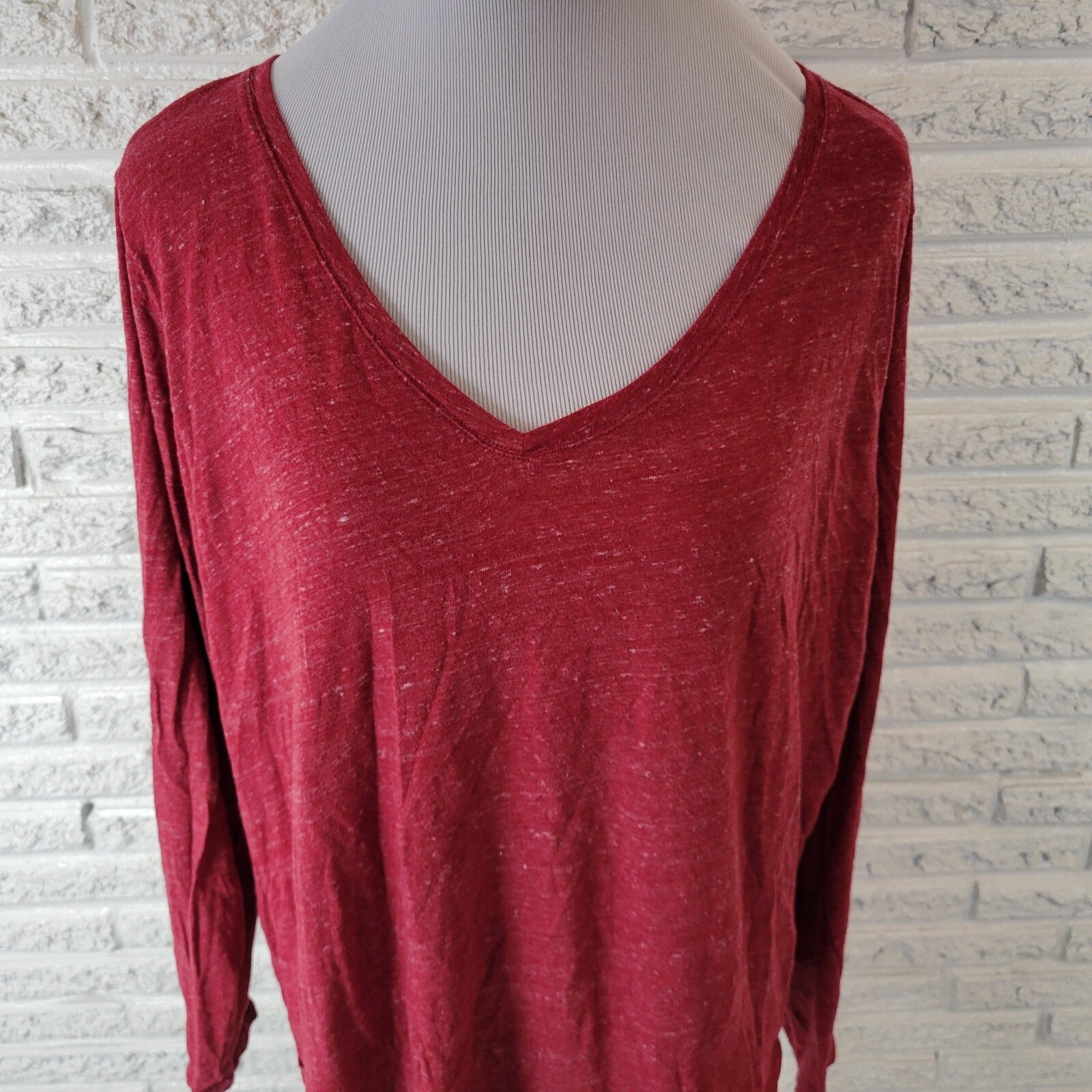 Sonoma Everyday Womens Top 1X Plus Tee Long Sleeve Red Cotton Blend Lightweight