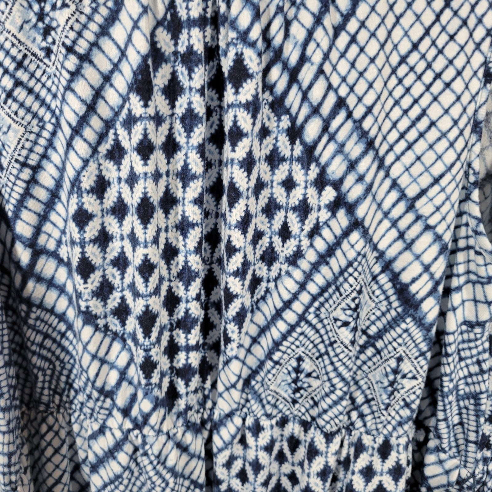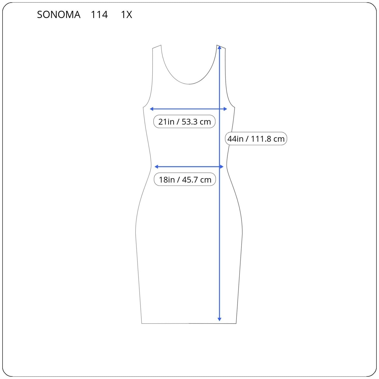 The Sonoma Women Dress in 1X Plus size is a sleeveless tank sheath dress in a blue/white geometric pattern, made from a comfortable polyester blend material. The dress features a V-neckline, pullover closure, and a belted waist for a flattering fit. Ideal for travel or casual occasions, this knee-length dress is perfect for any season and is machine washable for easy care. With a stretchy fabric and a stylish design, this Sonoma dress is a versatile and fashionable choice for plus-size women.