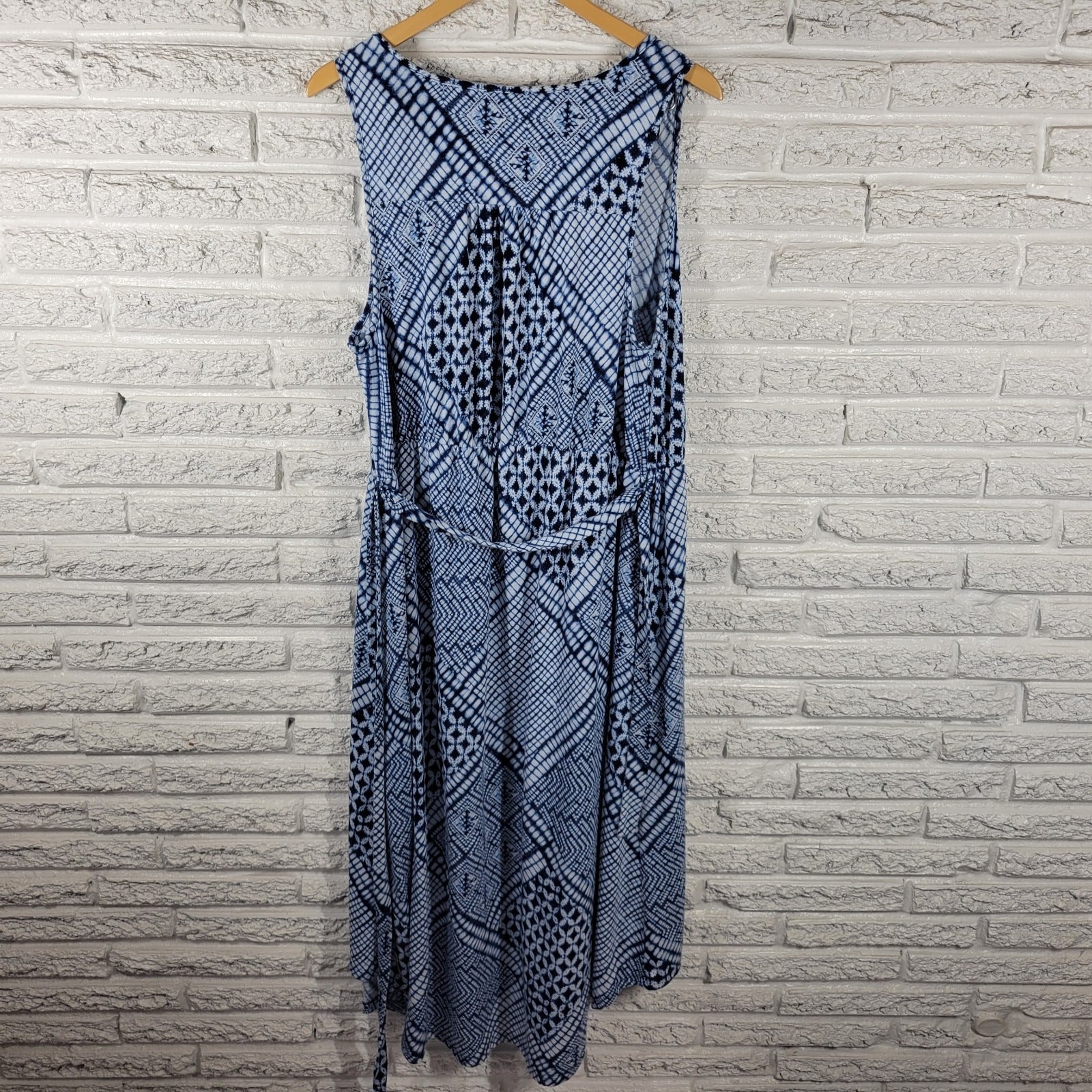 Sonoma Women's 1X Plus Blue White Geometric Sleeveless Sheath Tank Dress Belted