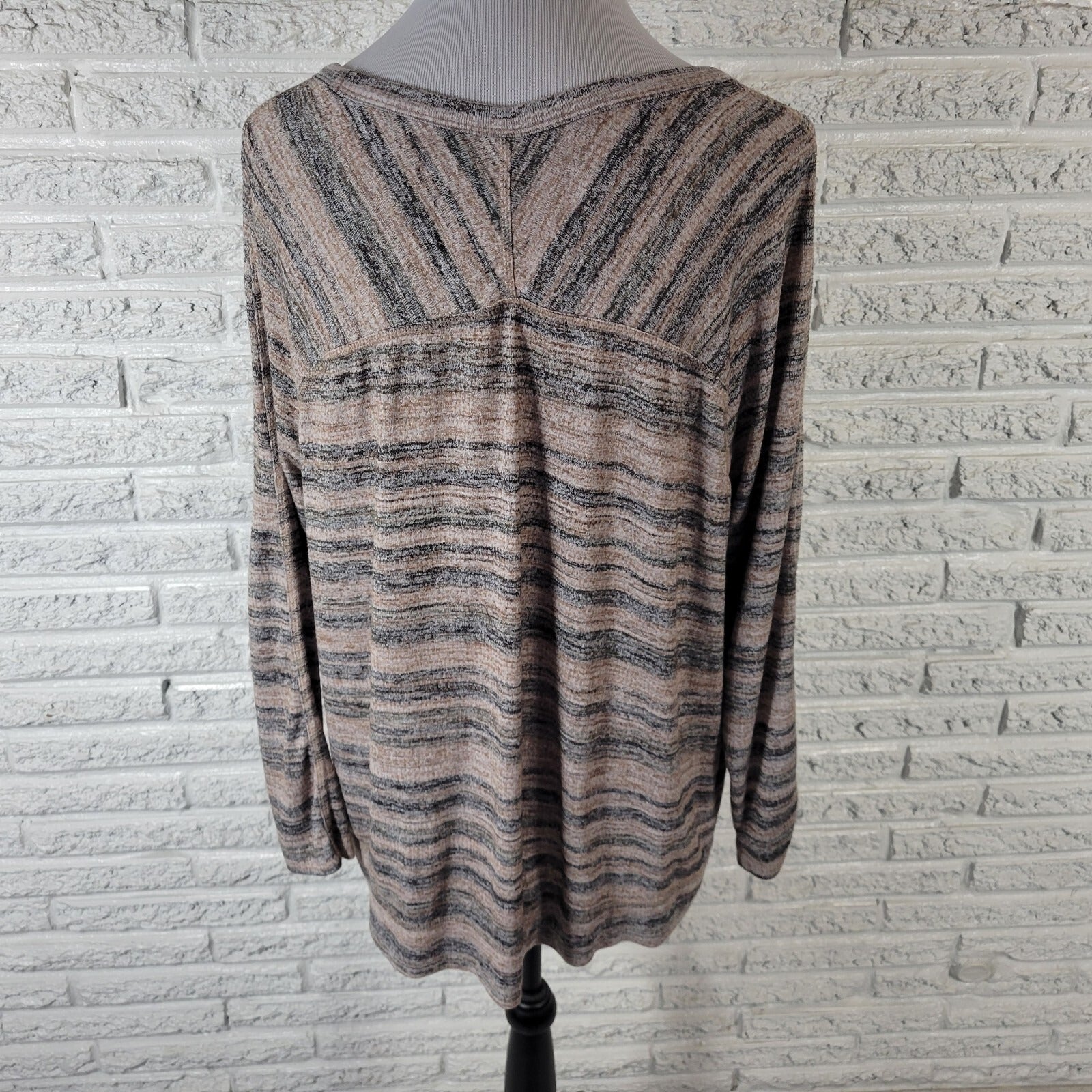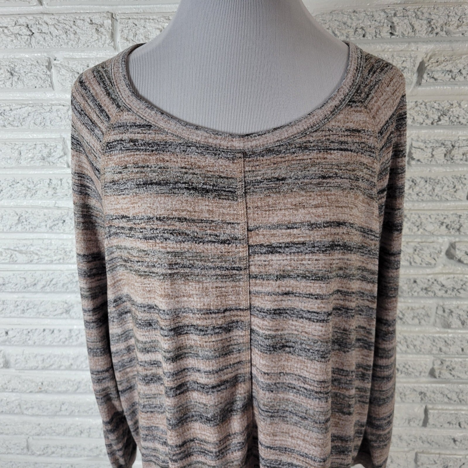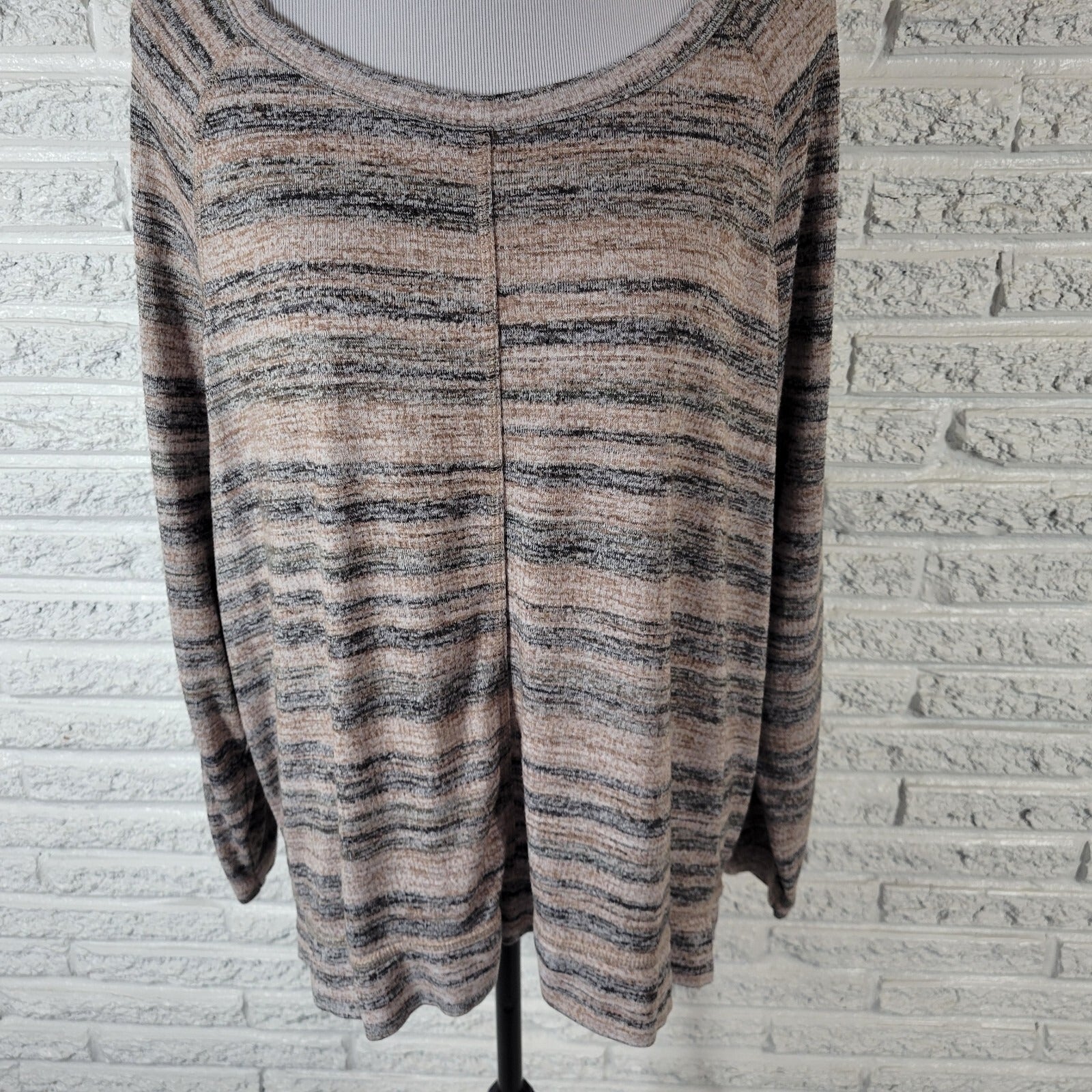 Sonoma Womens Top 1X Plus Long Sleeve Black Heather Knit Comfy Casual Poly Blend