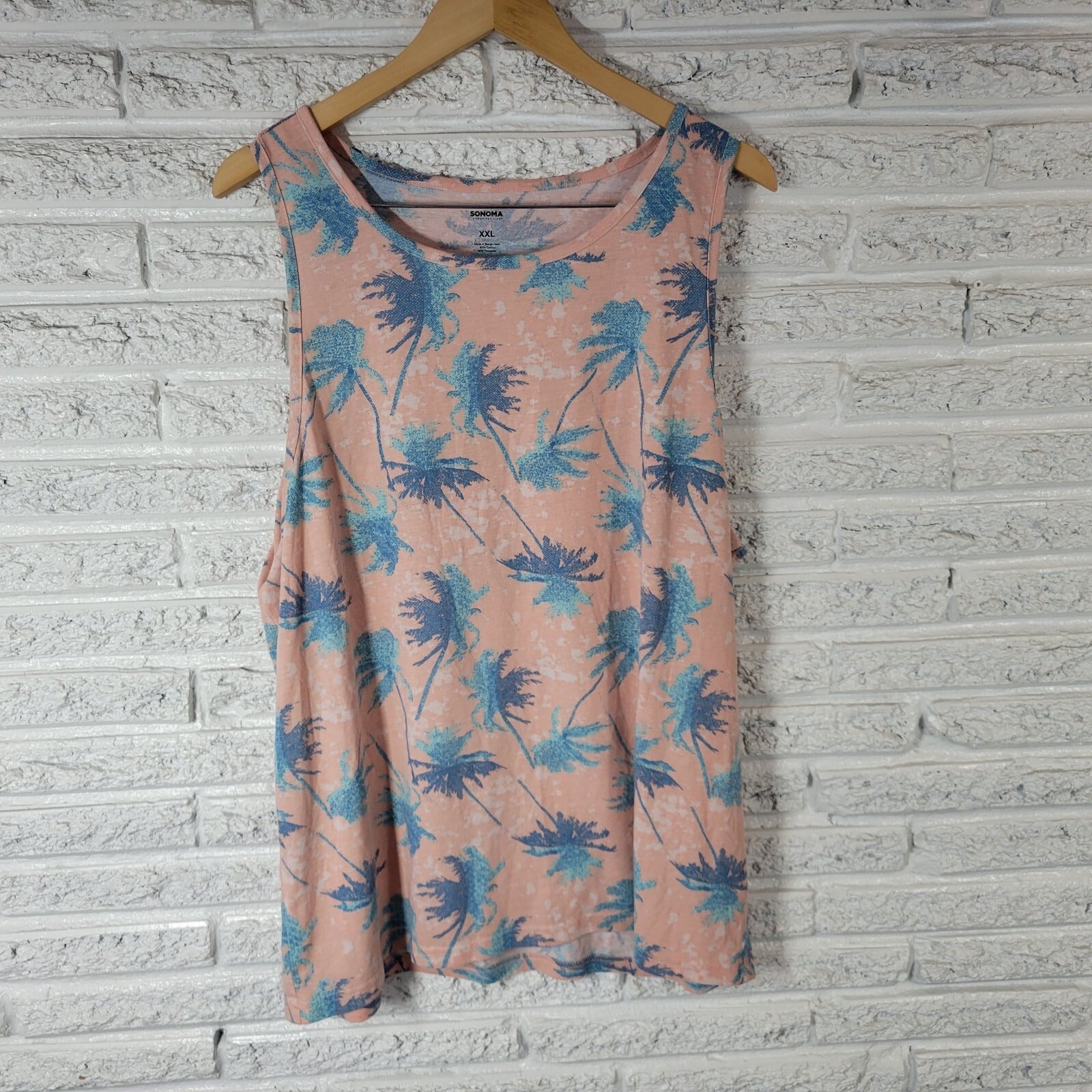 Sonoma Womens Top XXL Plus Tank Tropical Palm Trees Lightweight Blue Floral