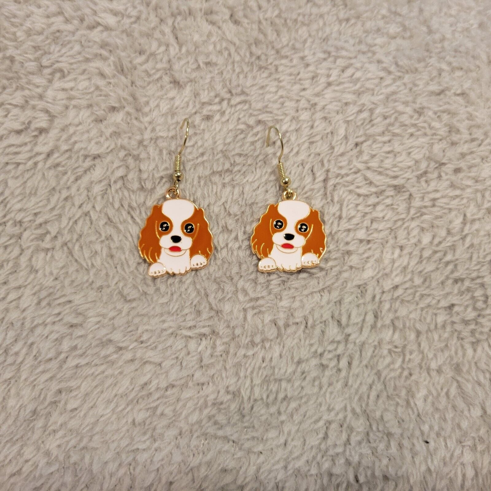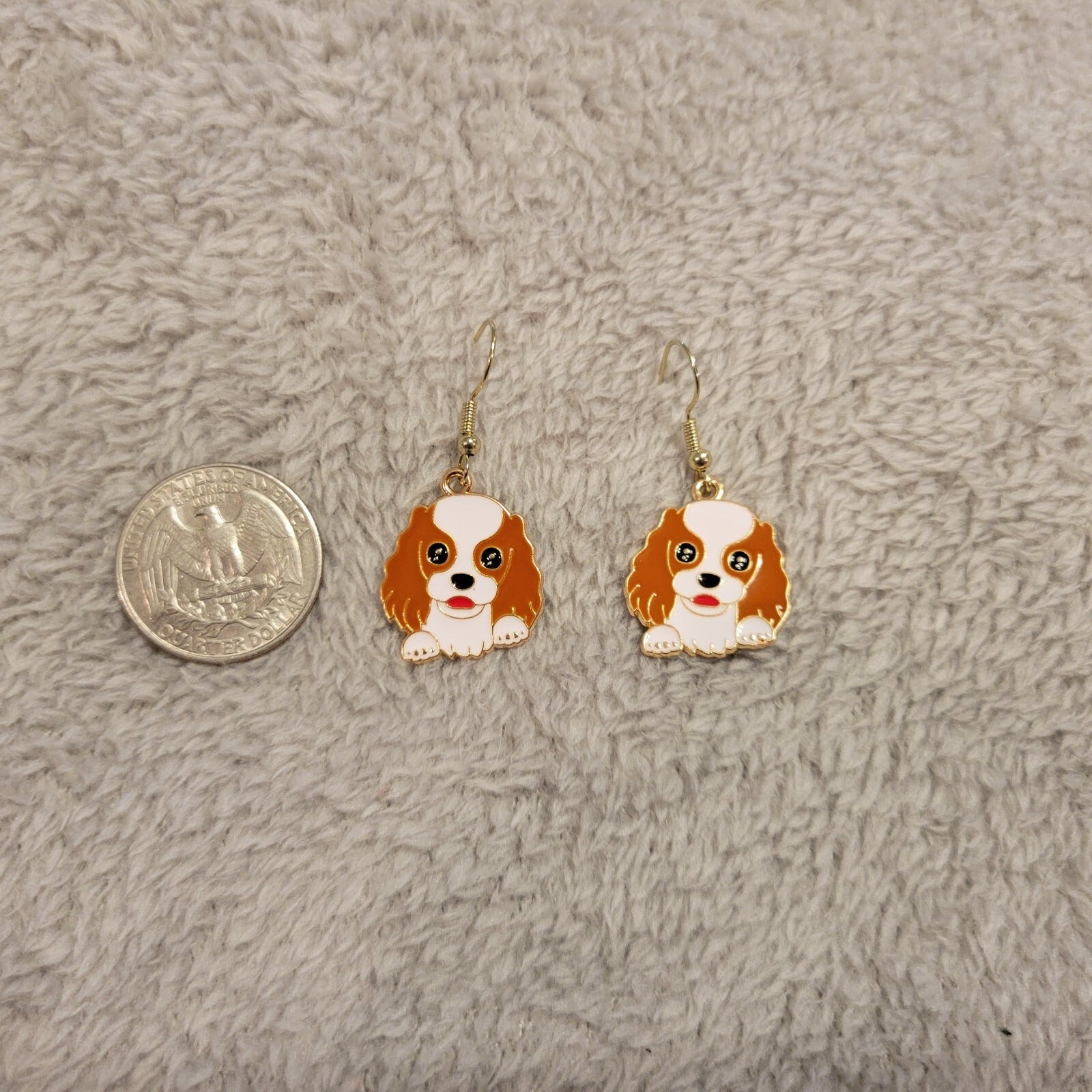 Spaniel Dog Puppy Earrings One Pair Gold Tone Hanging Dangle Fish Hook Novelty