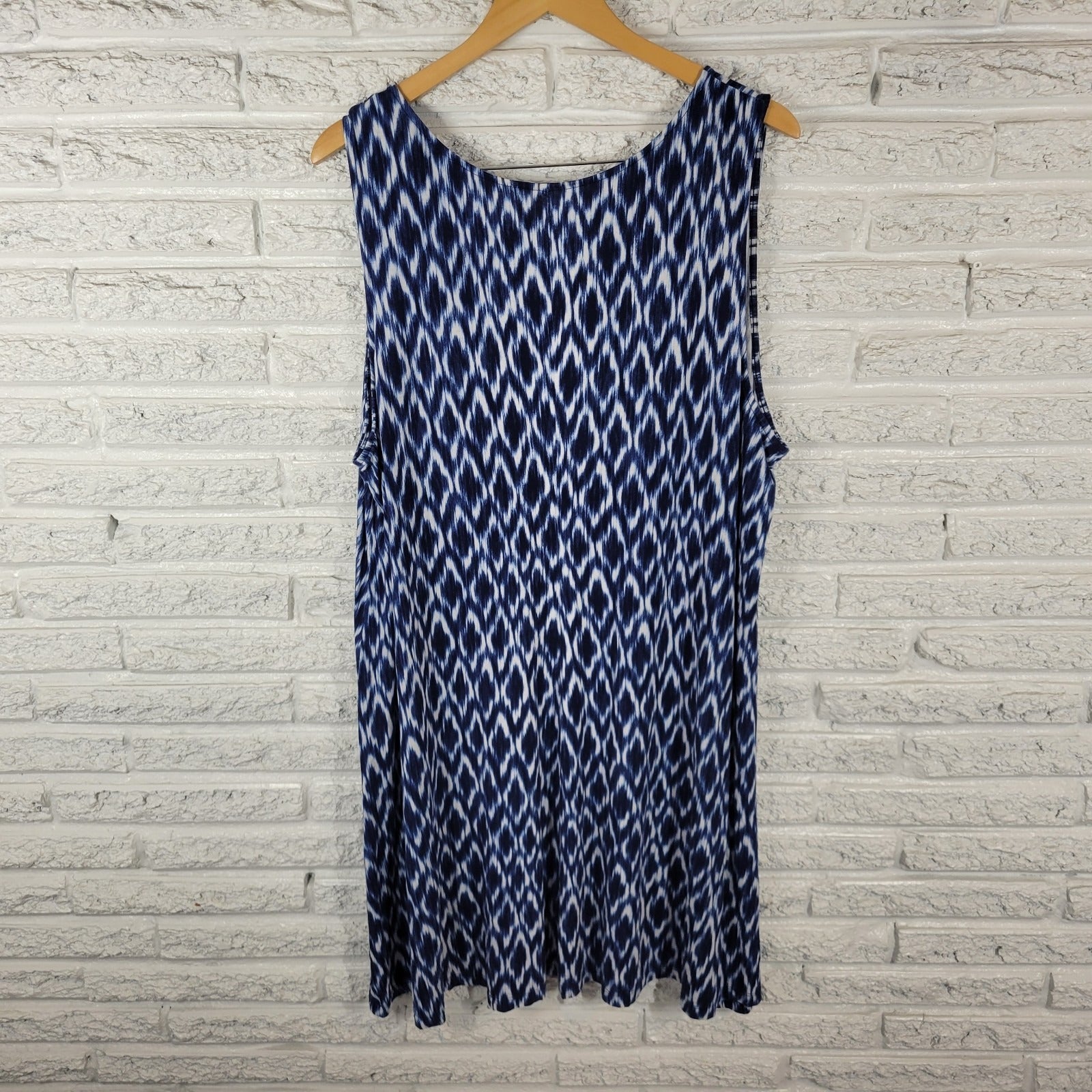 St Johns Bay Women Dress 2X Plus Tank Mini Blue Diamonds Watercolor Comfy Casual