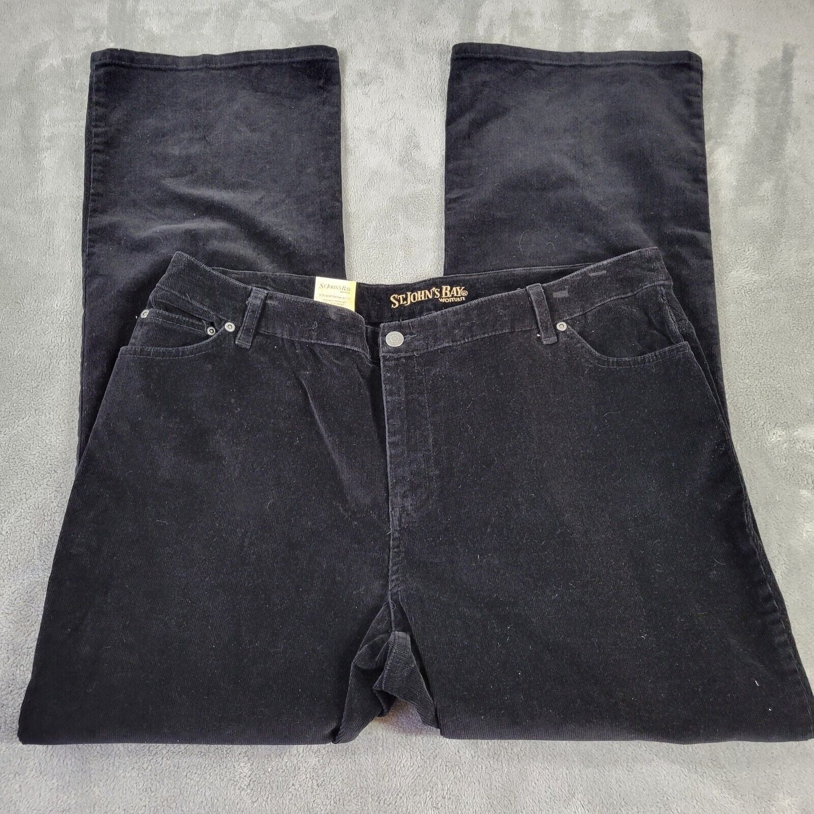 St Johns Bay Women Jeans 18W Plus Average Boot Cut Black Corduroy Denim Zip Fly