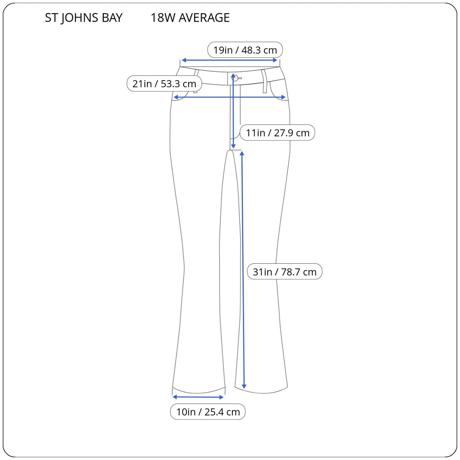 St. John's Bay brings you a pair of comfortable bootcut jeans in a versatile black, designed to be a staple in your wardrobe. These jeans are crafted from a durable cotton blend with a touch of stretch, ensuring both style and flexibility. The size 18W with an average inseam of 31 inches and a waist size of 38 inches, caters to a regular fit for plus-size women. Details such as the solid pattern, zip closure, and machine-washable care make these jeans practical for everyday wear. Whether you're out for a casual lunch or running errands, these bootcut jeans will keep you looking sharp and feeling great throughout the seasons, from the warmth of summer to the chill of winter.