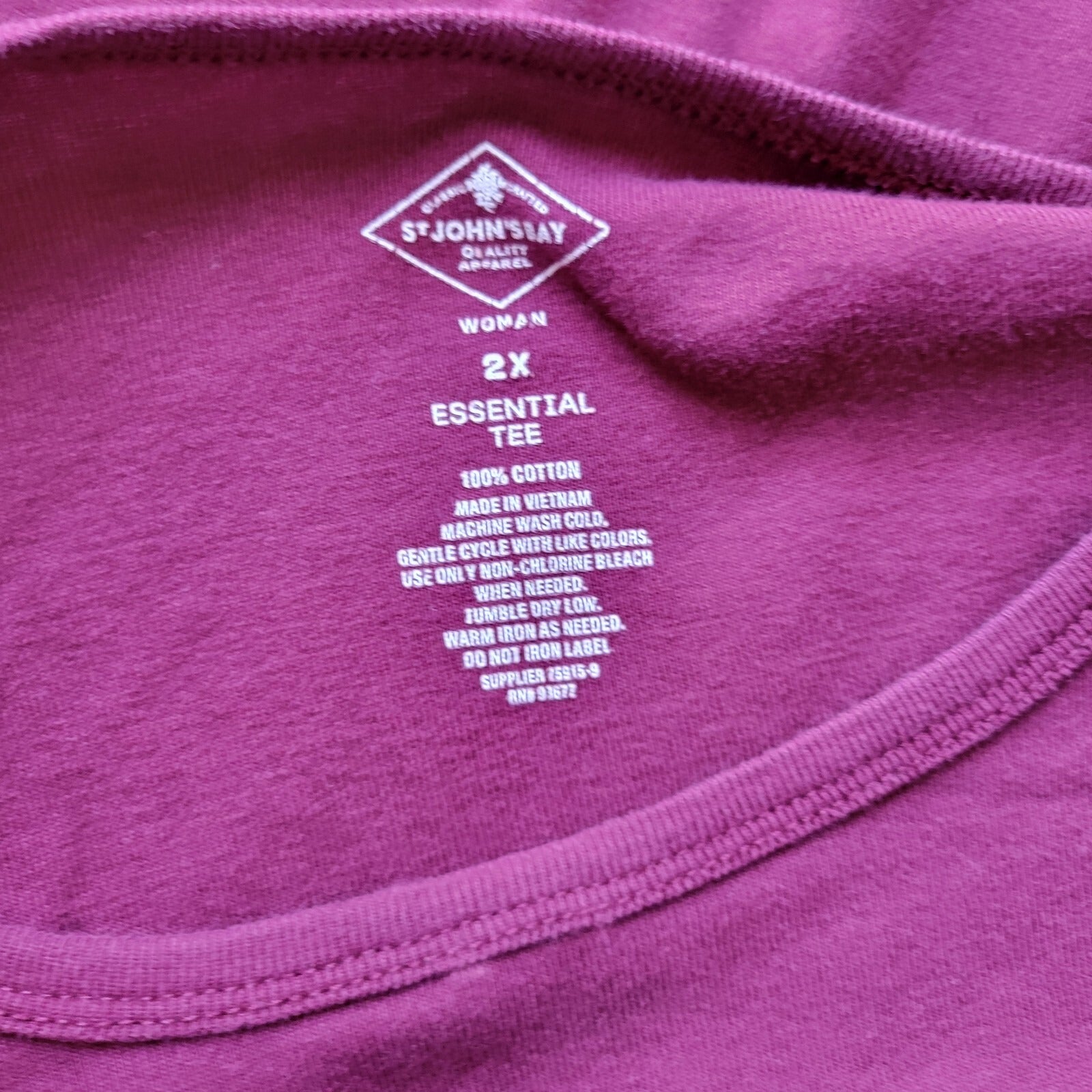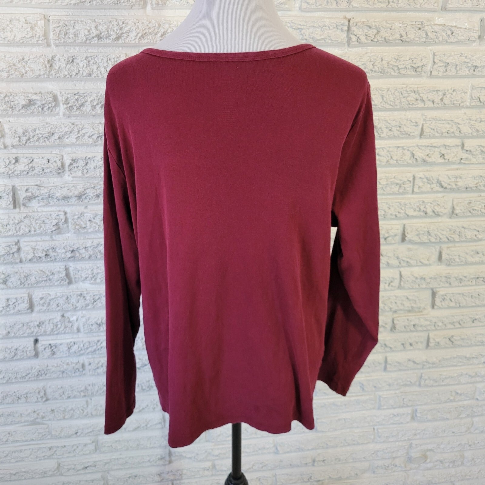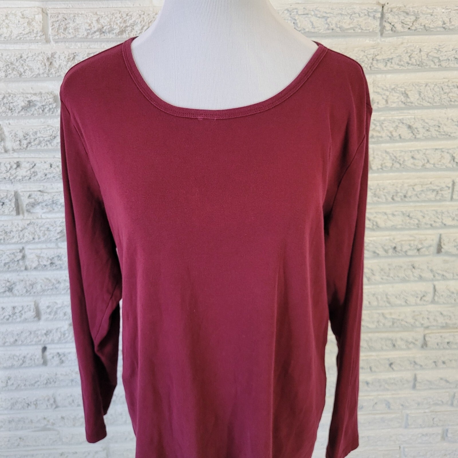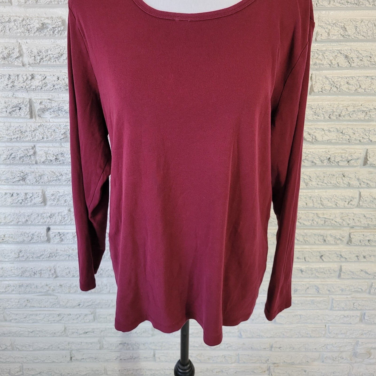 St Johns Bay Women Top 2X Plus Tee Long Sleeve Burgundy Cotton Lightweight Comfy