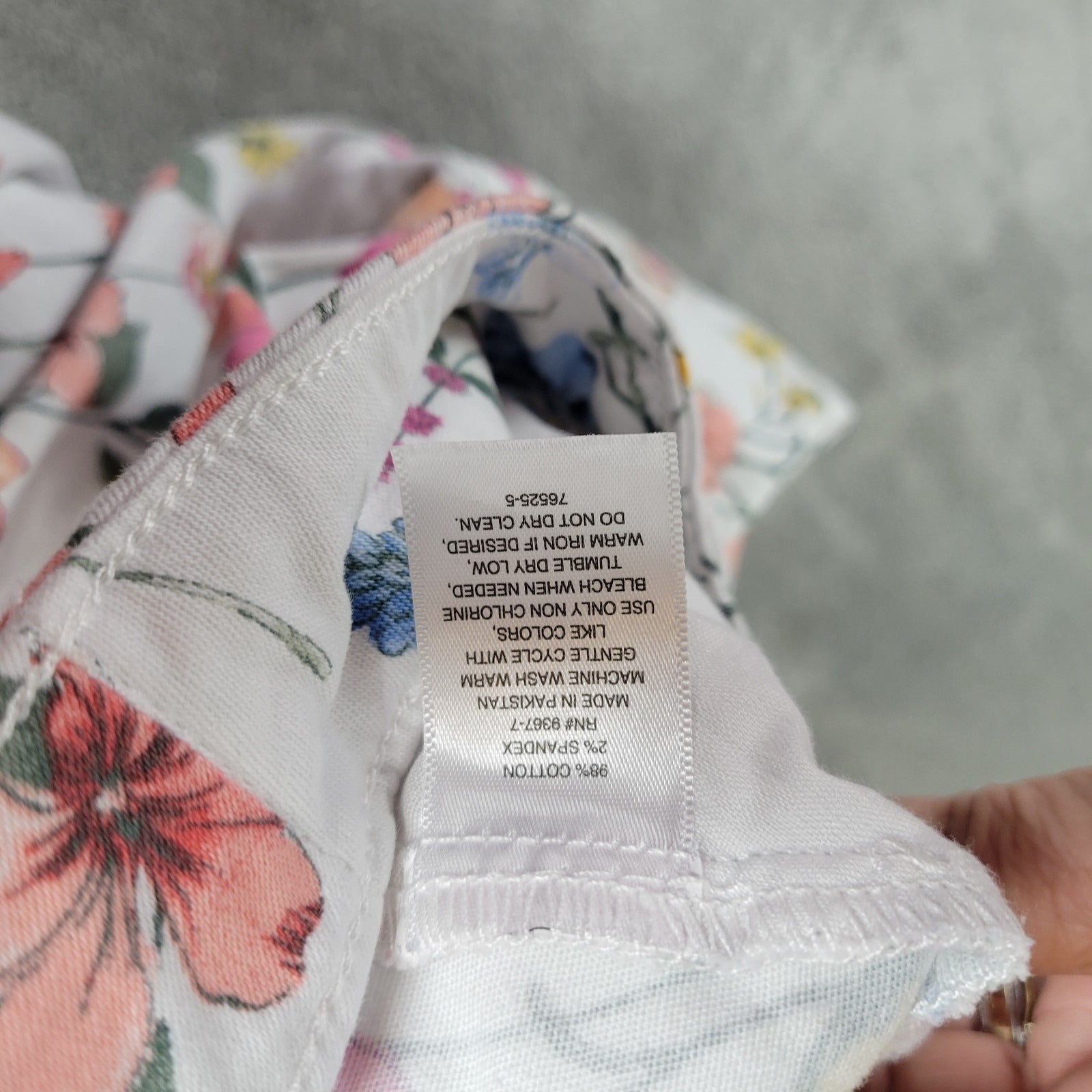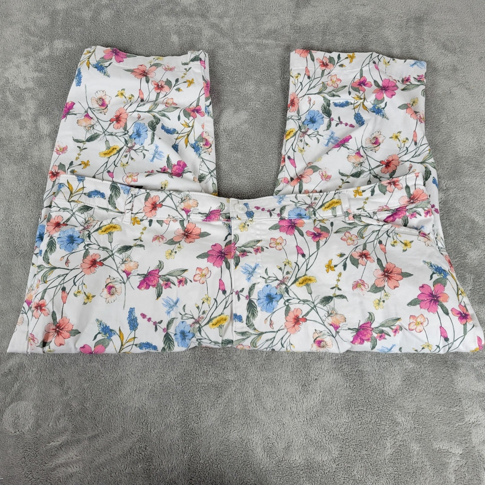 St Johns Bay Womens Pants 22W Plus Capri Pink Blue Floral Zip Fly Pockets Casual