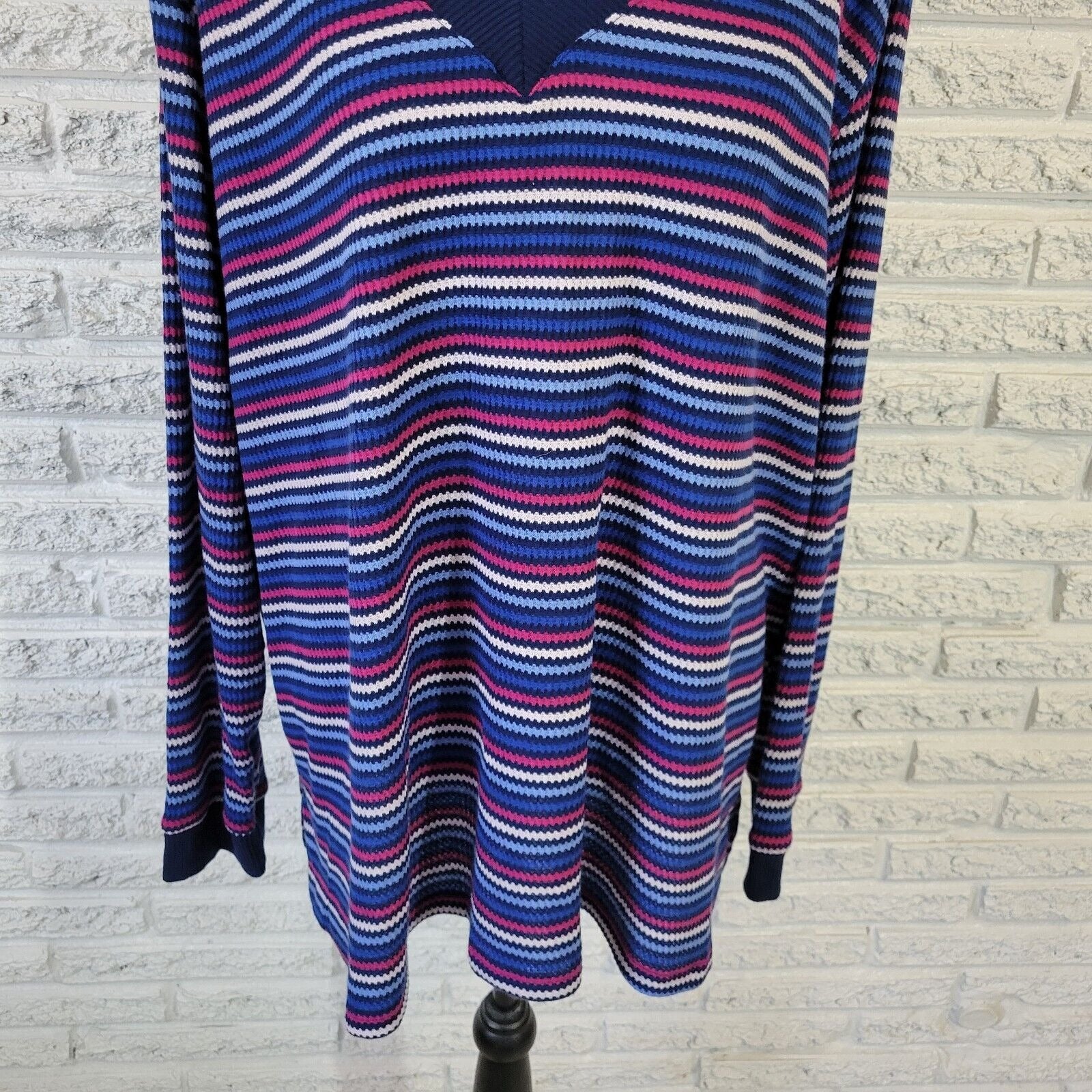 St Johns Bay Womens Sweater 2X Plus Blue Red Stripe Poly Blend Lightweight Comfy