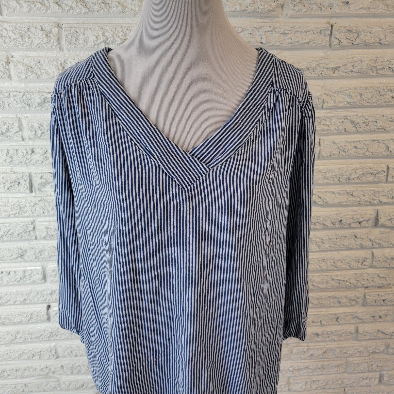 St Johns Bay Womens Top 0X Plus 3/4 Sleeve Blue Stripe Casual Lightweight Rayon