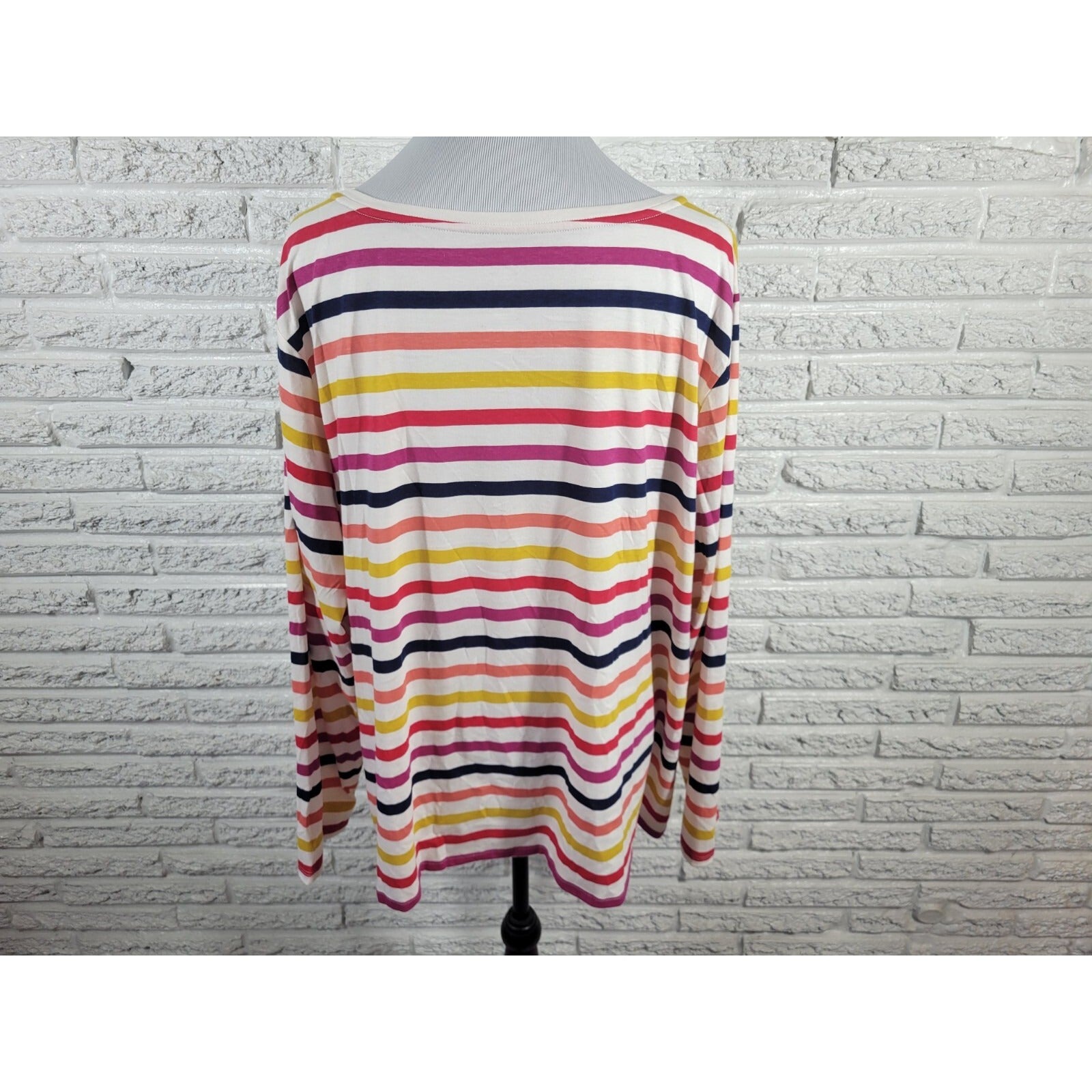 St Johns Bay Womens Top 2X Plus Long Sleeve Red Yellow Stripe Cotton Blend New