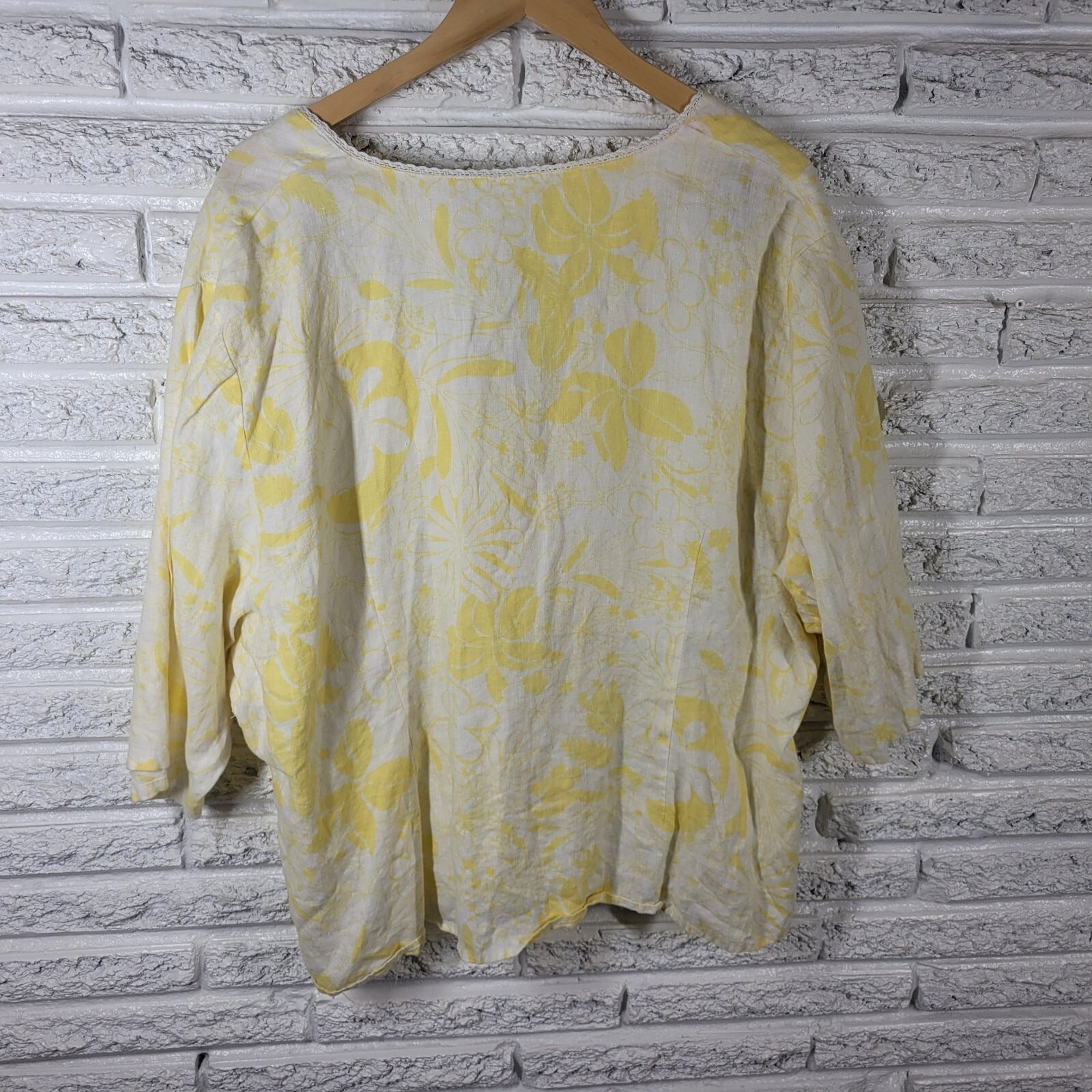 St Tropez West Women Top 3X Plus 3/4 Sleeve Yellow Floral Linen Lightweight Lace